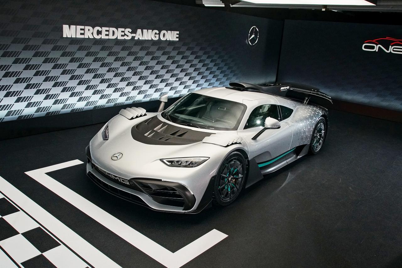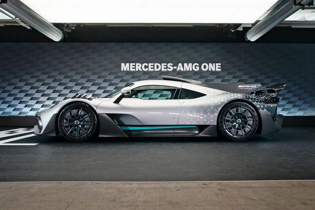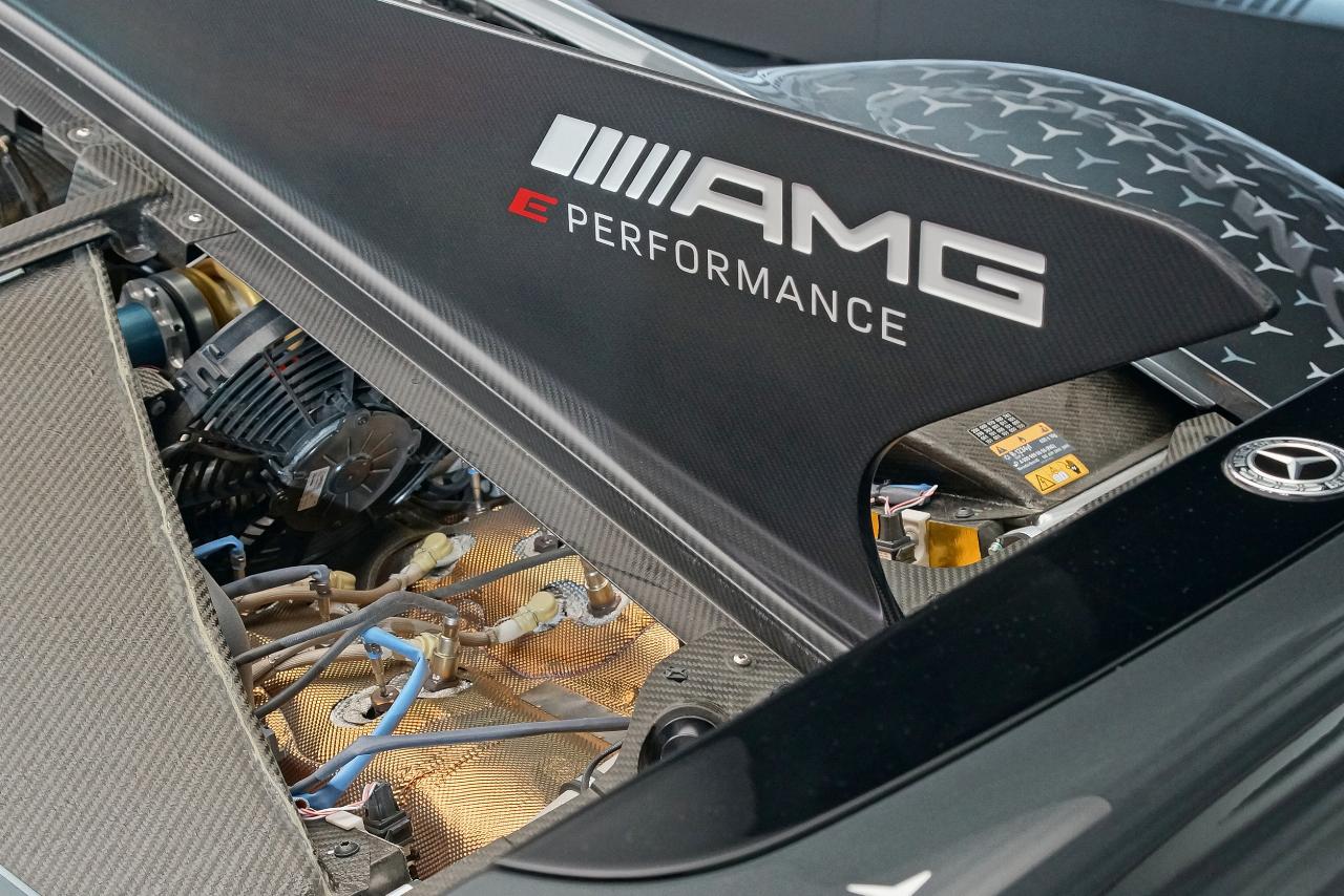 Nicht weniger als 1063 PS (782 kW) Systemleistung liefert der Plug-In-Hybrid-Antrieb, die Höchstdrehzahl des V6-Aggregats ist zugunsten der Lebensdauer und wegen der Auslegung auf reguläre Spritqualitäten auf 11000 Umdrehungen in der Minute begrenzt. Damit stürmt der AMG One in 2,9 Sekunden von 0 auf 100 km/h, in glatten sieben Sekunden auf 200 km/h und in 15,6 Sekunden auf 300 km/h; abgeregelt wird bei 352 km/h. Das sind herausragende Werte, wenngleich AMG ursprünglich in den Bereich von sechs Sekunden für den Spurt auf 200 km/h kommen wollte. Der kombinierte Kraftstoffverbrauch liegt bei lediglich 8,7 Litern pro 100 Kilometer und man kann mehr als 18 Kilometer weit elektrisch fahren.