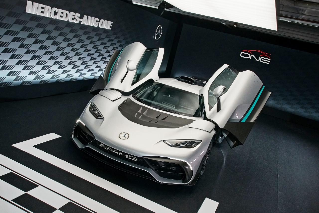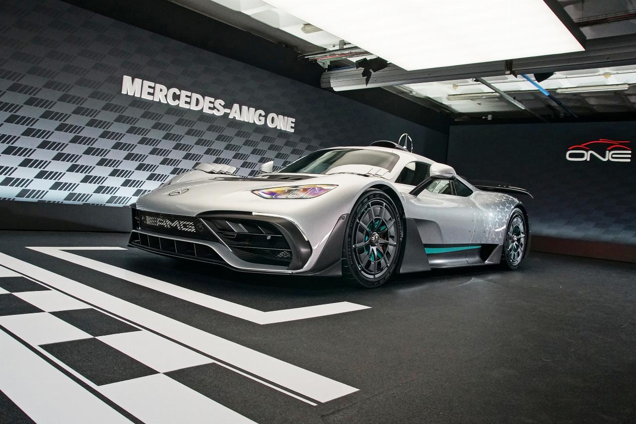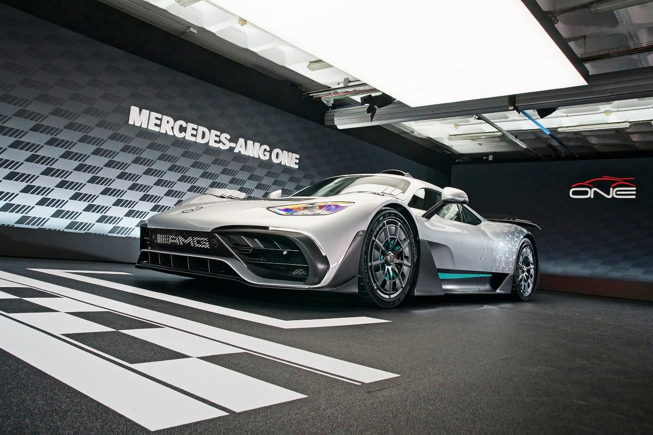 Nicht weniger als 1063 PS (782 kW) Systemleistung liefert der Plug-In-Hybrid-Antrieb, die Höchstdrehzahl des V6-Aggregats ist zugunsten der Lebensdauer und wegen der Auslegung auf reguläre Spritqualitäten auf 11000 Umdrehungen in der Minute begrenzt. Damit stürmt der AMG One in 2,9 Sekunden von 0 auf 100 km/h, in glatten sieben Sekunden auf 200 km/h und in 15,6 Sekunden auf 300 km/h; abgeregelt wird bei 352 km/h. Das sind herausragende Werte, wenngleich AMG ursprünglich in den Bereich von sechs Sekunden für den Spurt auf 200 km/h kommen wollte. Der kombinierte Kraftstoffverbrauch liegt bei lediglich 8,7 Litern pro 100 Kilometer und man kann mehr als 18 Kilometer weit elektrisch fahren.