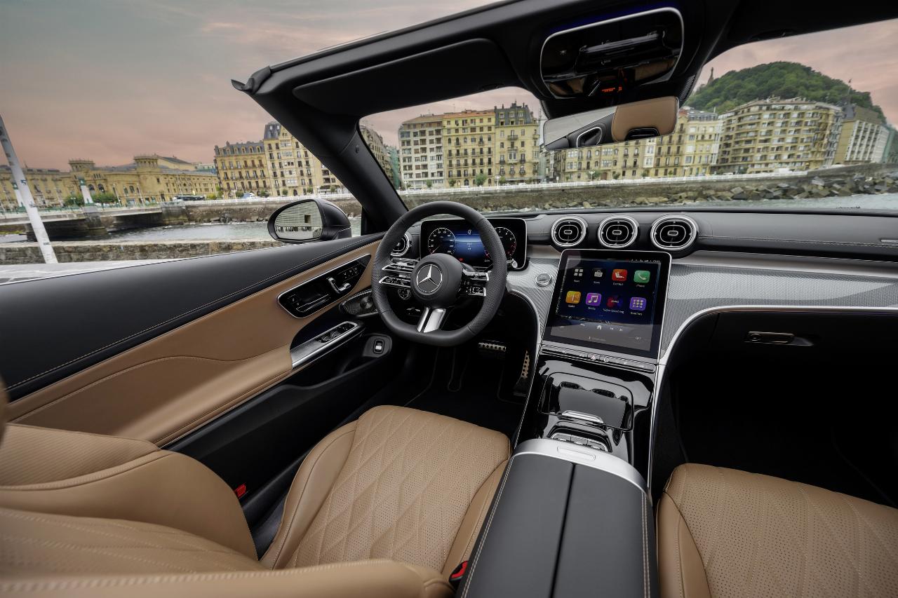 Der 4,85 Meter lange offene Viersitzer fährt serienmäßig unter anderem mit elektrischem Windschott und Kopfraumheizung vor. Das Stoffverdeck öffnet und schließt in 20 Sekunden und bis zu einer Geschwindigkeit von 60 km/h auch während der Fahrt. Das Cockpit besteht aus einer freistehenden, 12,3 Zoll großen digitalen Instrumentenanzeige und dem 11,9 Zoll großen fahrerorientierten Zentraldisplay im Hochformat, das sich elektrisch von 15 bis 40 Grad neigen lässt, um bei offenem Verdeck störende Lichtreflexionen zu vermeiden.
