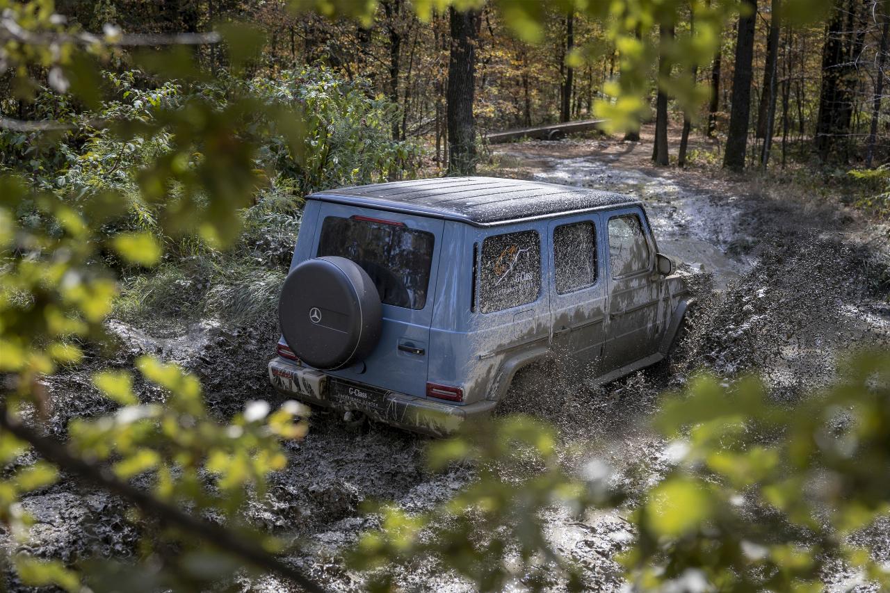 Das G-Class Experience Center befindet sich rund 15 Kilometer südlich von Graz auf dem weitläufigen Gelände eines ehemaligen Fliegerhorsts. Das über 100.000 Quadratmeter große Areal verfügt über drei Bereiche: den G Rock mit verschiedenen Steigungen auf unterschiedlichen Untergründen; den G Forest, ein Waldgebiet für Schrägfahrten, Verwindungen und Wasserdurchfahrten sowie Onroad eine Dynamikfläche, auf der Fahrer bei extremen Bremsungen und in Slalomparcours das Auto testen können. On top kann zudem der „Iron Schöckl“ mit 100 Prozent Steigung zugebucht werden. (aum)