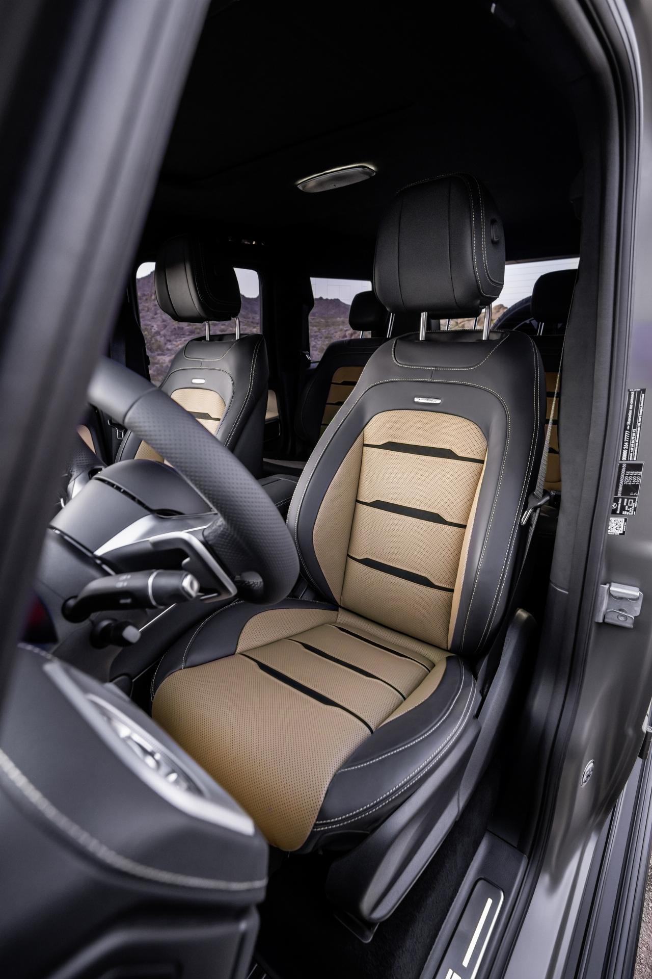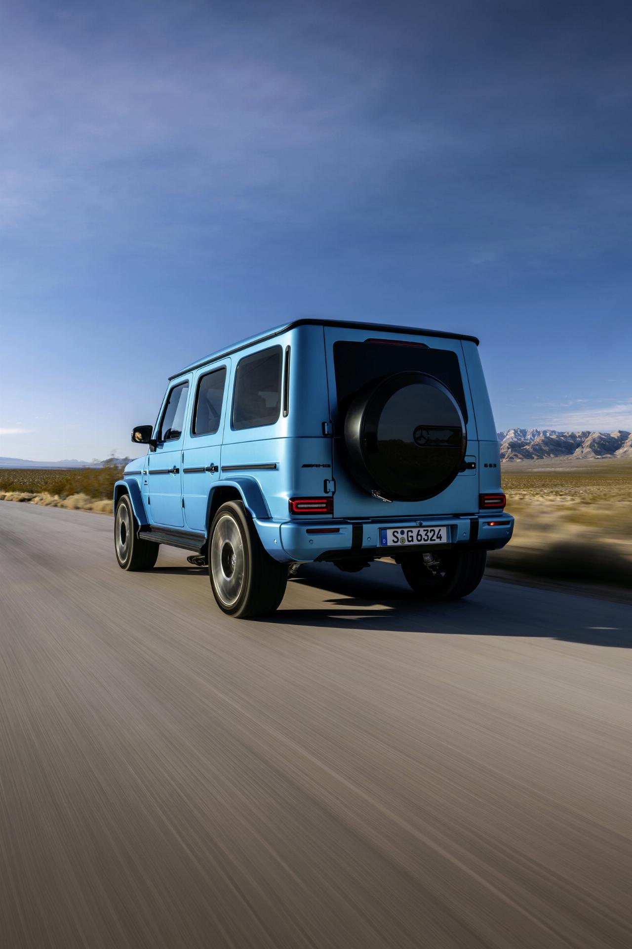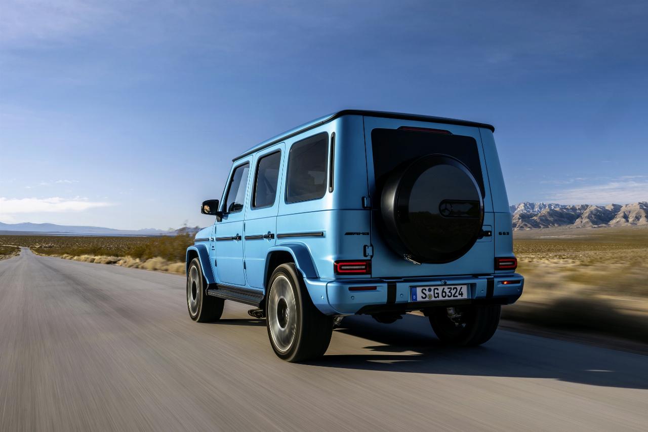 Topmodell ist der Mercedes-AMG G 63 mit vier Liter großem V8, der es auf 585 PS (430 kW) und 850 Nm bringt. Auch hier kommen noch einmal 20 PS und 200 Nm elektrische Unterstützung hinzu. Der G 63 sprintet in 4,4 Sekunden aus dem Stand auf Tempo 100. Die Höchstgeschwindigkeit ist auf 220 km/h begrenzt. Mit dem auf Wunsch erhältlichen Performance-Paket sind es eine Zehntelsekunde weniger und 20 km/h mehr.