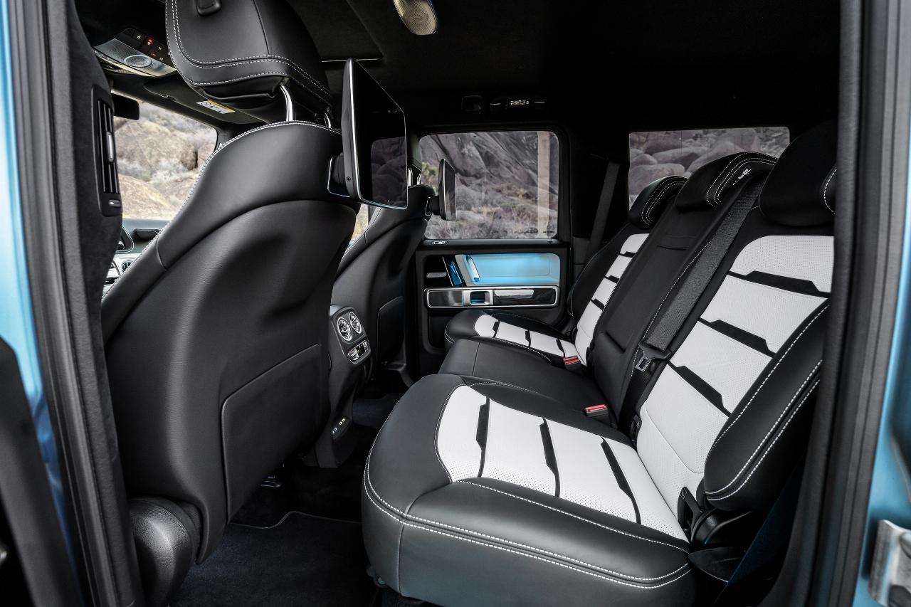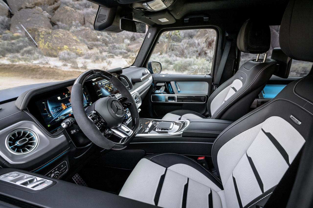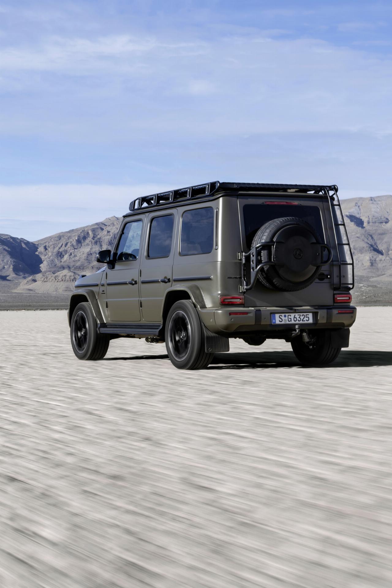 Topmodell ist der Mercedes-AMG G 63 mit vier Liter großem V8, der es auf 585 PS (430 kW) und 850 Nm bringt. Auch hier kommen noch einmal 20 PS und 200 Nm elektrische Unterstützung hinzu. Der G 63 sprintet in 4,4 Sekunden aus dem Stand auf Tempo 100. Die Höchstgeschwindigkeit ist auf 220 km/h begrenzt. Mit dem auf Wunsch erhältlichen Performance-Paket sind es eine Zehntelsekunde weniger und 20 km/h mehr.