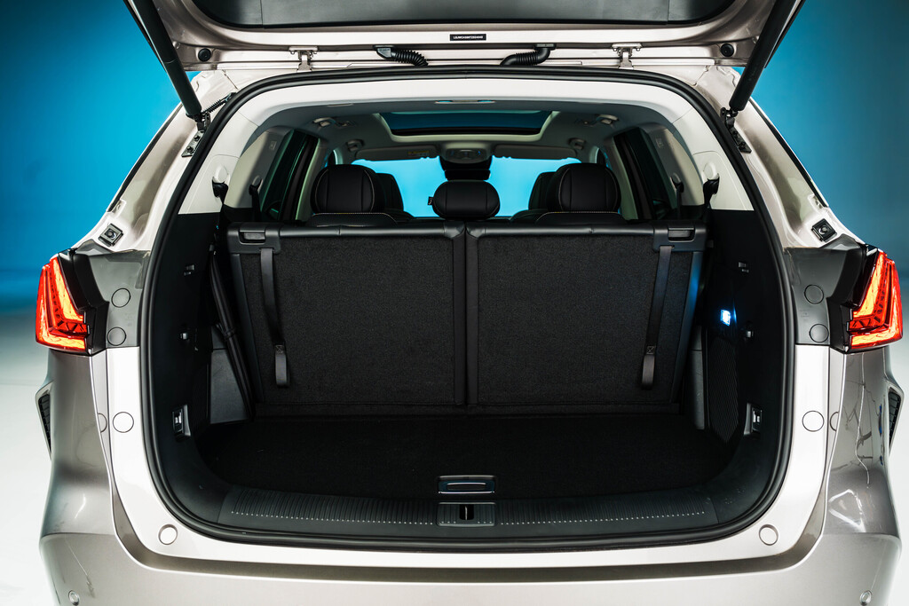 Das 4,98 Meter lange SUV bietet drei Sitzreihen und ein variables Raumkonzept, das selbst bei voller Besetzung noch 332 Liter Kofferraumvolumen bietet. Maximal sind es 2093 Liter. Große Türöffnungen und ein einfacher Zugang zur dritten Reihe erhöhen die Alltagstauglichkeit, helle Materialien und große Fensterflächen sorgen für eine freundliche Innenraumgestaltung.