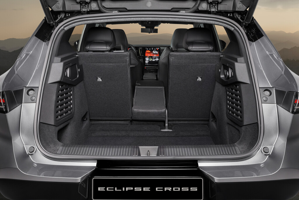 Die markentypische Frontpartie des 4,47 Meter langen Fahrzeugs erhält ein dreidimensionales Wabenmuster und das Heck ist als Sechseck gestaltet. Die Seitenlinie prägt eine J-förmige Linie. Der Eclipse Cross rollt je nach Ausstattung auf 19- oder 20-Zoll-Rädern. Die Instrumentierung besteht aus einem digitalen Anzeige für den Fahrer und einen zentralen Hochkant-Bildschirm für das Infotainment. Beide Displays messen bis 12,3 Zoll. An Bord sind bis zu 20 Assistenzsystem, die auch teilautomatisiertes Fahren ermöglichen. Zu den weiteren Ausstattungsdetails gehören je nach Modellvariante ein elektrochromes Glasdach mit individuell verstellbarer Lichtdurchlässigkeit, Google-Funktionen und ein Premiumsoundsystem. Der Kofferraum fasst zwischen 478 und 1670 Liter.