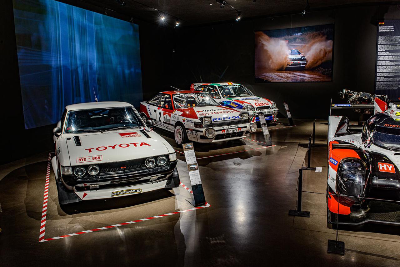 Zu den weiteren Siegertypen gehören die Rallyewagen Celia GT4-ST165, mit dem Carlos Sainz 1990 den ersten Weltmeistertitel für die Marke gewann, der Corolla WRC-AE111 – Sieger in Monte Carlo 1998 – und der Yaris WRC, mit dem Toyota 2017 nach 18-jähriger Pause in die Königsklasse des Rallyesports zurückgekehrt ist. Mit dem ebenfalls ausgestellten Toyota TF105 Formula 1 bestritten Ralf Schumacher und Jarno Trulli insgesamt 79 Formel-1-Rennen und fuhren fünf Podiumsplätze sowie zwei Pole Positions ein.