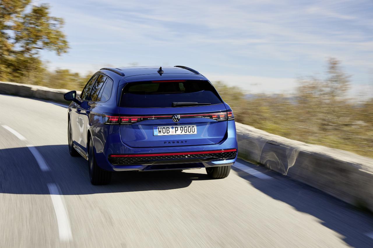Es gibt ihn in Europa erstmals nur noch als Kombi, für Vortrieb sorgen Benziner, Dieselmotoren oder Hybride. Die Kraftübertragung erfolgt auf die Vorderräder oder alle vier Räder und jetzt nur noch per Automatik; der Handschalter ist entfallen. Mit 4,92 Metern Länge ist der Passat nahe am BMW 5er und der Mercedes-Benz E-Klasse positioniert, viel geräumiger als 3er und C-Klasse. Der Kofferraum fasst 690 Liter und lässt sich bis auf 1920 Liter erweitern.