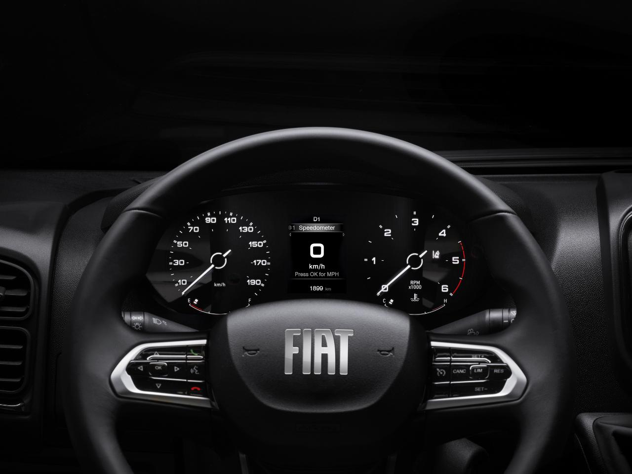 Die Serienausstattung beinhaltet jetzt unter anderem die Rückfahrkamera, das Überwachungssystem für den Reifenluftdruck (TPMS), der auf zwei Beifahrer ausgelegte Airbag sowie zusätzliche elektronische Fahrerassistenzsysteme wie Notbrems- und Spurhalteassistent, Verkehrszeichenerkennung, Müdigkeitswarner und den für neue Fahrzeugtypen künftig vorgeschriebenen Geschwindigkeitsassistenten (ISA). Die neue Telematik-Box ermöglicht die Nutzung der Dienstleistungen aus dem Angebot der Connected Services von Fiat Professional. (aum)