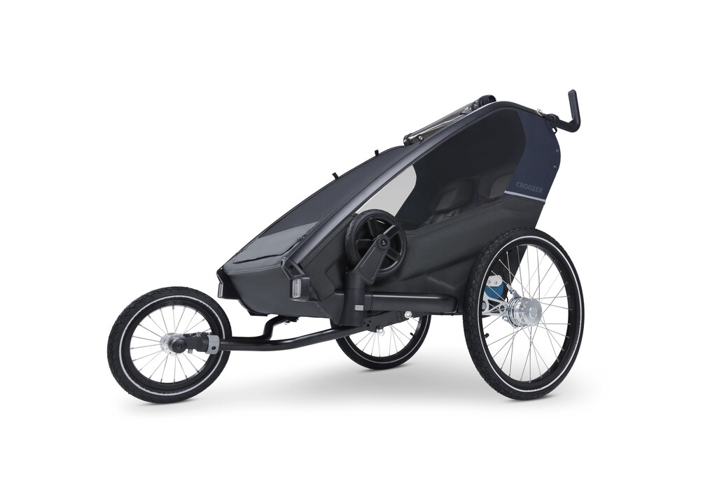 Auch im Segment der Kinder-Anhänger gibt es eine nützliche Innovation: Hersteller Croozer hat mit dem Modell Lykke (1200 Euro) einen Falt-Anhänger mit Sitzplätzen für zwei Kinder im Angebot, der sich mit zwei Handgriffen auf eine Breite von lediglich 40 Zentimetern zusammenklappen und damit auch in engen Garagen oder Hausfluren abstellen lässt.