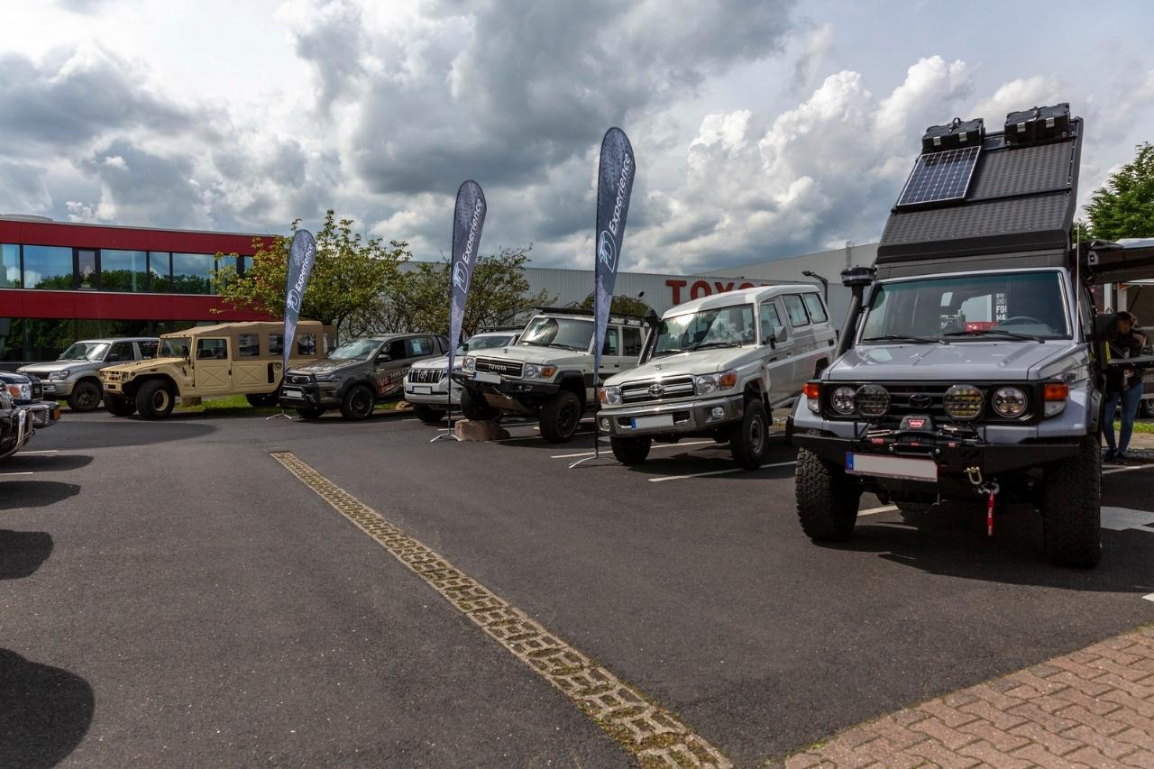 Vor der Ausstellungshalle erwartet die Besucher des Offroad-Days auf dem Parkplatz ein großes Land-Cruiser- und Hilux-Treffen. Erwartet werden unter anderem der ab 1988 in Deutschland nur vorübergehend verkaufte Toyota 4-Runner mit kräftigem 3,0-Liter-V6, der ab 2006 für internationale Märkte gebaute FJ Cruiser und der 1995 in Japan vorgestellte Hightech-Kraxler Toyota Mega Cruiser mit gigantischer Bodenfreiheit durch Portalachsen. (aum)