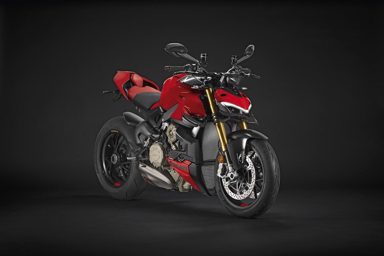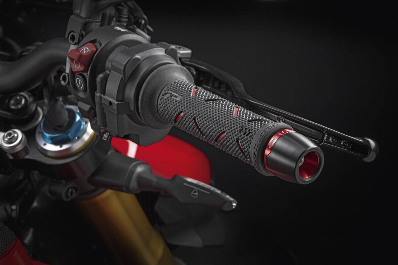Um den Charakter noch zu verstärken, bietet Ducati für die Streetfighter V4 besonderes Performancezubehör an. Erhältlich sind Komponenten zur weiteren Optimierung von Optik, Gewicht und Fahrdynamik. So umfasst das Sport-Paket einen Tankverschluss, Brems- und Kupplungshebel und Lenker-Gegengewichte aus Billet-Aluminium. Dynamische LED-Blinker und ein leichter Kennzeichenhalter aus Carbon setzen weitere Akzente. Weitere erhältliche Carbon-Komponenten sind unter anderem Kotflügel, eine Cockpit-Verkleidung, Tank- und Ritzelabdeckung sowie die Winglets. 800 Gramm Gewichtsersparnis bringt der Endschalldämpfer von Akrapovic.
