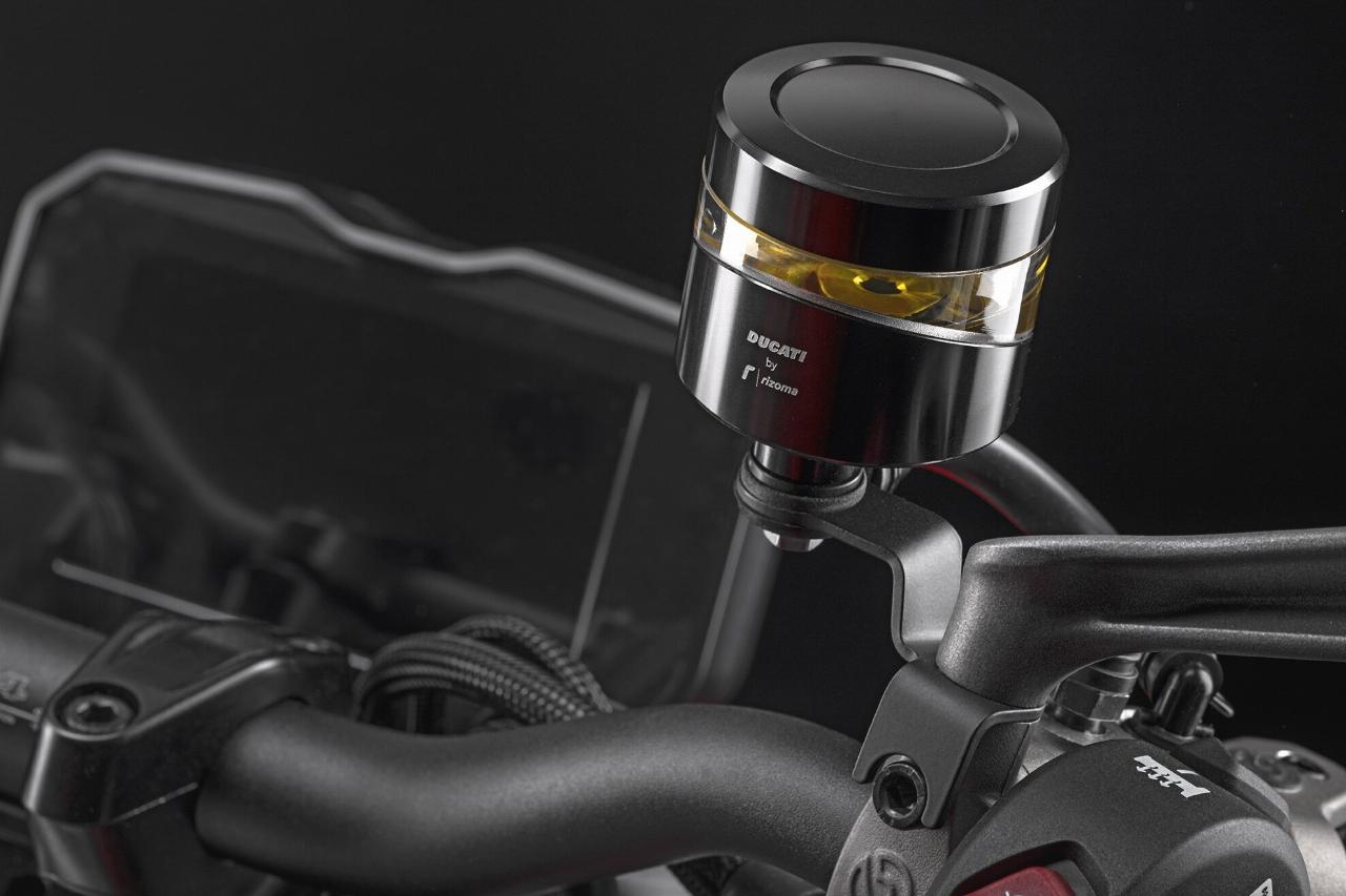 Weitere optische Akzente setzen unter anderem die Brems- und Kupplungsflüssigkeitsbehälter oder der Öleinfülldeckel aus Billet-Aluminium. Ebenfalls erhältlich sind Racing-Griffe für besseren Grip und weniger Vibrationen.