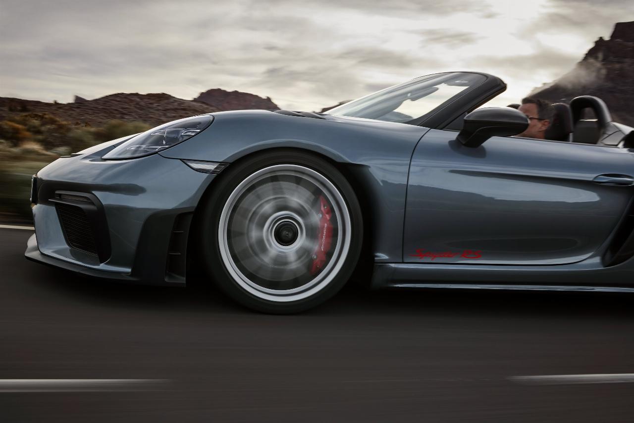 Auch wenn die Zahl der gebauten 718 Spyder RS offiziell nicht limitiert ist, wird es nicht viele Exemplare geben. Denn die aktuelle Baureihe läuft in zwei Jahren aus. Dann soll ein batterieelektrischer Sportwagen den 718 mit Verbrenner ersetzen. Wer also noch einmal den Sound eines 4,0-Liter-Boxermotors bei 9000 Umdrehungen hören will, sollte nicht lange überlegen und die 155.575 Euro investieren. Dafür gibt es obendrein ein Sportfahrwerk mit 30 Millimeter Tieferlegung. Höhe, Sturz, Spur und Stabilisator lassen sich individuell einstellen. 20-Zoll-Schmiederäder sind serienmäßig. Wem das nicht genügt, kann auch Magnesium-Schmiederäder bestellen.