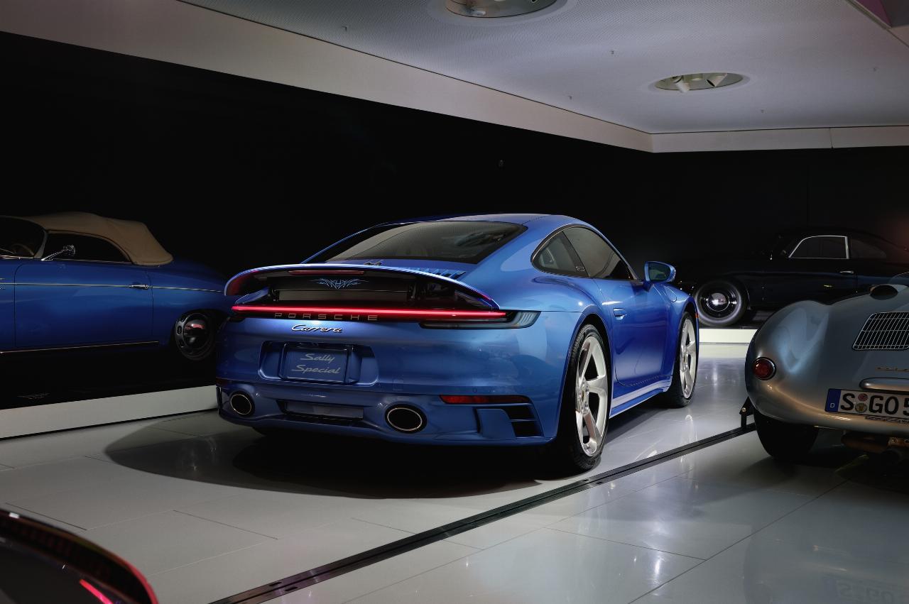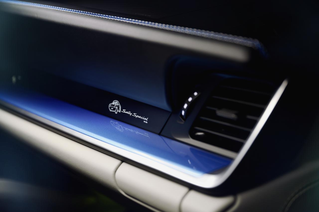 „Das Auto basiert auf der schnellsten und agilsten Variante der 911 Carrera Modellreihe, dem 480 PS starken 911 Carrera GTS. Es ist mit einem Schaltgetriebe ausgestattet und greift damit Sally Carreras Leidenschaft zum Fahren auf “, erklärt Boris Apenbrink, Leiter Porsche Exclusive Manufaktur Fahrzeuge. „Der 911 Sally Special war eines der intensivsten, emotionalsten und detailverliebtesten Sonderwunsch-Projekte, an denen unser Team bisher gearbeitet hat. Ein Beispiel: Das Auto ist in Sallyblaumetallic lackiert, einem speziell für dieses Projekt entwickelten Lack, der von Hand aufgetragen wurde.” Die Turbo-Look-Felgen wurden von den Designern in Weissach neu interpretiert und speziell für den 911 Sally Special gefertigt.
