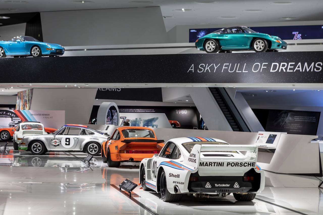 Das Ausstellungskonzept setzt auf Themeninseln, fasst Dekaden zusammen und digitale Animation und wirft auch einen Blick in die Zukunft. Die Feierlichkeiten zum Jubiläum gehen über die Landesgrenzen hinaus. Ab dem 23. Juni widmet das Verkehrshaus der Schweiz in Luzern dem 75. Geburtstag des Sportwagenherstellers eine Ausstellung. Mit etwa 600.000 Gästen pro Jahr ist es das meistbesuchte Museum des Landes. Das Porsche Museum wird neben verschiedenen Leihgaben ebenso mit dem speziell für das Jubiläumsjahr konzipierten Heritage-Truck „Driven by Dreams“ vertreten sein, der zuvor in Rumänien, Kroatien und Italien Station gemacht hat. Außerdem wird das Jubiläum der Marke auf 2369 Metern Höhe im Museum Großglockner Hochalpenstraße in Österreich begangen.