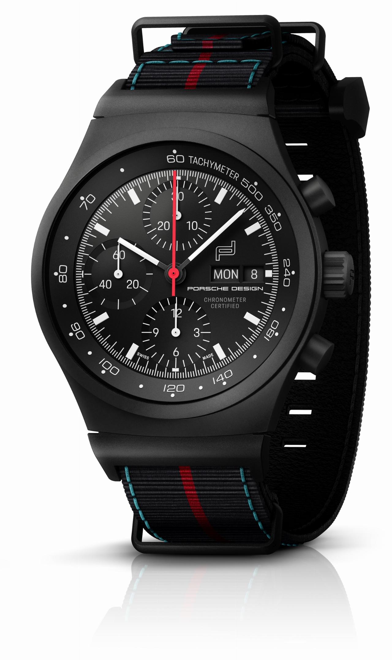 Und zum Jubiläum nicht fehlen darf der „Chronograph 1 – 75 Jahre Porsche Edition“ der Unternehmenstochter Porsche Design. Die Tachymeterskala sowie die Tag- und Datumsanzeige sind in der aktuellen Markenschrift gehalten. Auf der Rückseite, hinter dem Saphirglasboden, zitiert der Aufzugsrotor des mechanischen Uhrwerks die Form der berühmten Fuchsfelge des 911. Hergestellt werden 475 Stück zum Preis von 9975 Euro. (aum)