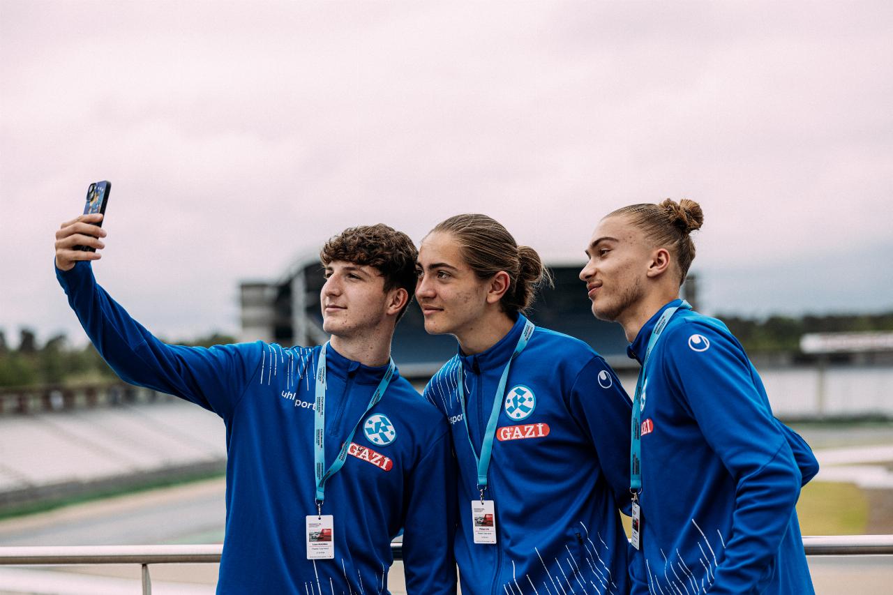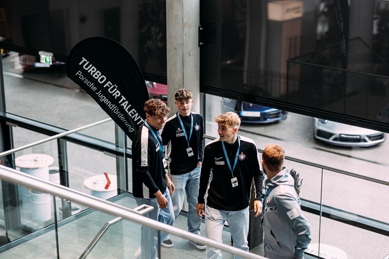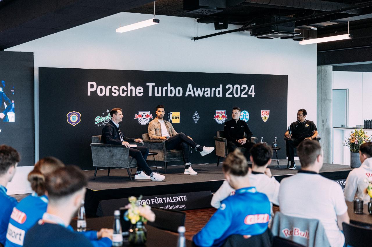 Fußballweltmeister und Markenbotschafter Sami Khedira, Vertragsrennfahrer Laurin Heinrich und der ehemalige Basketballprofi und jetzige Ludwigsburger Trainer David McCray unterhielten sich im Podiumsgespräch über die Besonderheiten und Herausforderungen ihrer sportlichen Karriere sowie die Förderung durch Porsche. Zudem beantworteten sie Fragen aus dem Publikum.
