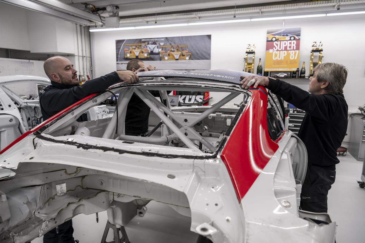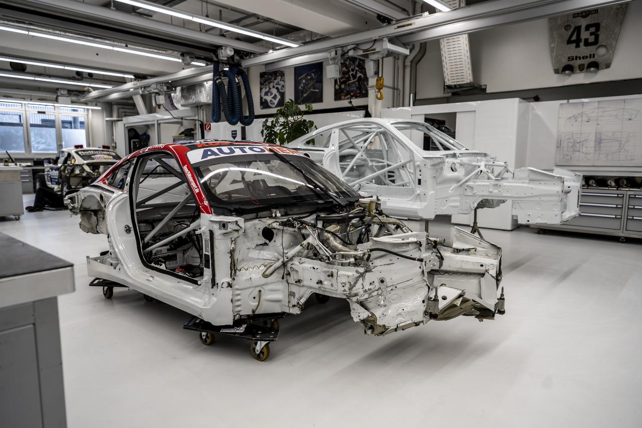 „Unser Anspruch an die Instandsetzung des Fahrzeugs war es, so viele Teile von der Originalsubstanz wie nur möglich zu übernehmen“, versichert Armin Burger, Koordinator Historischer Motorsport. Aus Gründen der Sicherheit müssen aber einige Neuteile verwendet werden. So wurde beispielsweise das Dach des verunfallten Fahrzeugs übernommen und in das neue Chassis integriert. „Es war uns wichtig, die Folierung und den originalen Abnahmestempel vom Saisonabschluss-Rennen 2022 auf dem Hockenheimring als Teil der Geschichte beizubehalten“, erklärt Burger.