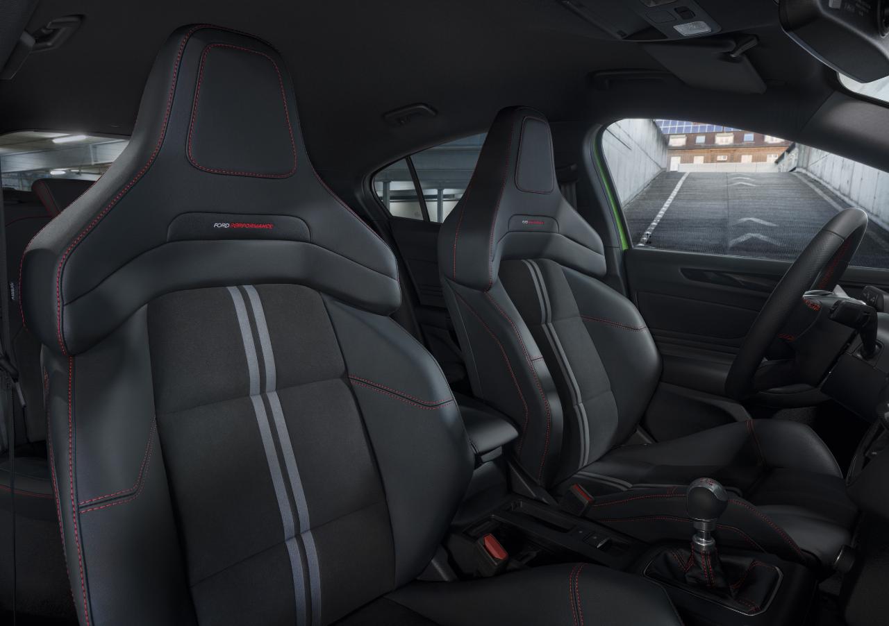 Im Innerraum wartet der Focus mit fest zupackenden Sportsitzen sowie einem griffigen Lederlenkrad auf. Die Rezeptur wirkt stimmig. Einzig das digitale Kombi-Display lässt trotz vieler Einstellmöglichkeiten, angefangen beim Ladedruck bis hin zur Öltemperatur, eine gezielt sportliche Note vermissen. Immerhin lassen sich die nüchtern anmutenden Instrumente einfach ablesen.