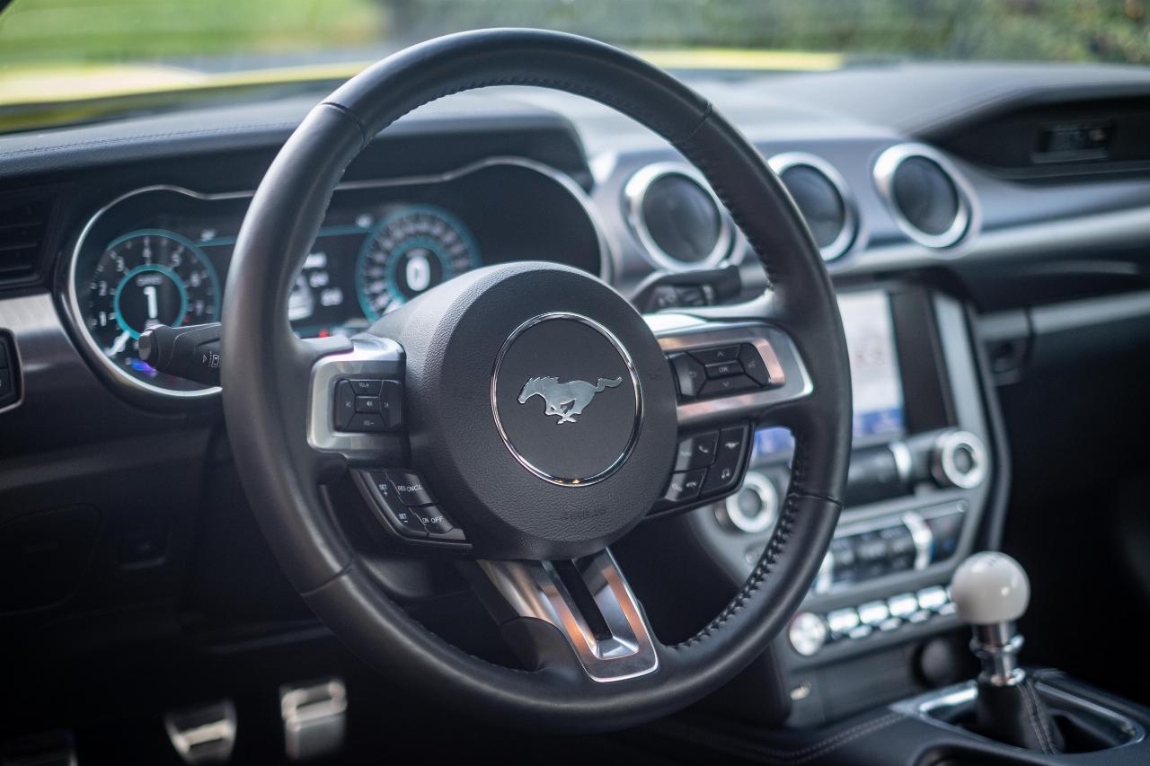 Für die eingefleischten US-Car-Fans ist der Mach 1 wohl schon eine Spur zu europäisch geraten. Für die Sportwagenfans hingegen ist er ein für die eigenen Zwecke voll geeignetes Auto. Hinzu kommt etwas, das man heutzutage schon als wichtiges Extra wahrnimmt: Ein Schaltgetriebe. Im Mustang bewegt der Pilot auf Wunsch eine weiße Kugel in bestenfalls 4,8 Sekunden durch sechs Gänge – das automatische Zwischengas beim anschließenden Herunterschalten übernimmt die Software. Der Mustang gibt dem Fahrer damit wieder das Gefühl, sein Pony per Hand und Fuß zum Galopp zu verhelfen. Da schaltet man doch gern noch einmal herunter, um sich den vollen Klang aus fünf Litern Hubraum zu gönnen.