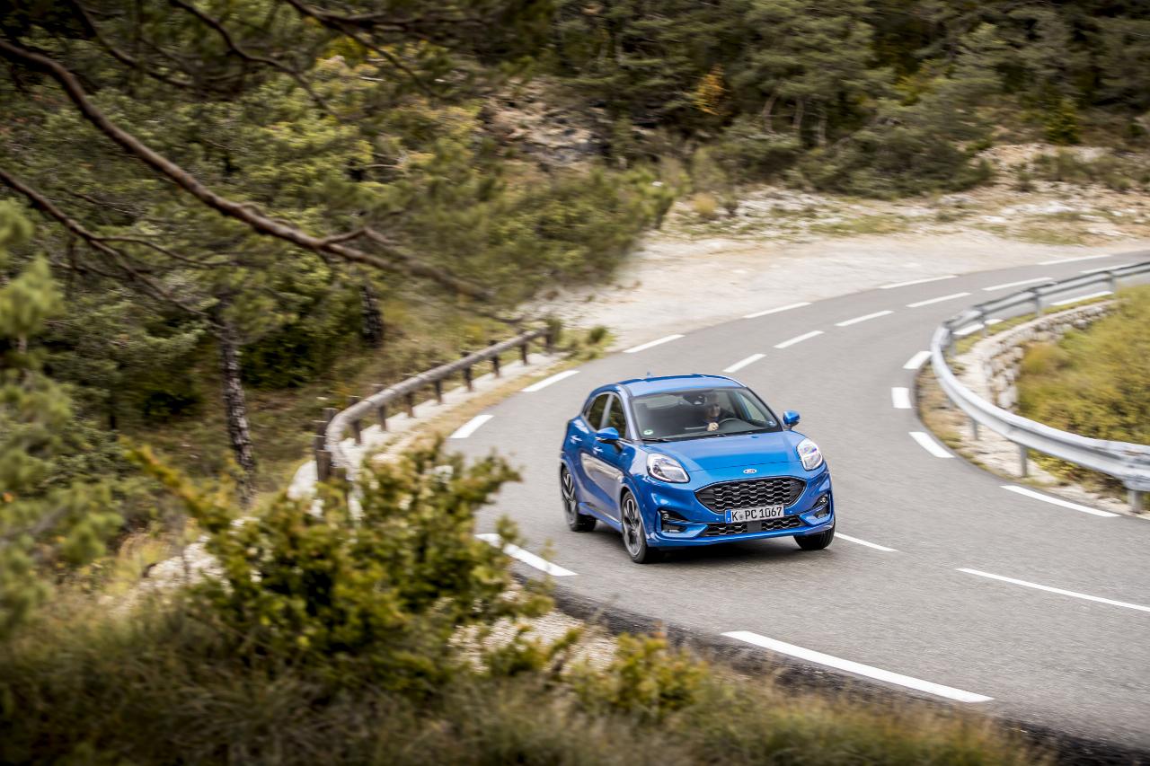 Die Preisliste für den Puma beginnt bei 23.150 Euro. Die weitgehend vollständig ausgestattet Hybrid-Version in der Aussstattung ST-Line X – unter anderem mit Fahrspur-Assistenten, Falschfahrer-Warnfunktion, Verkehrschildererkennung, Klimaautomatik und Tempomat sowie einem feinen Soundsystem von B & O – kostet 26.990 Euro. (Walther Wuttke/cen)