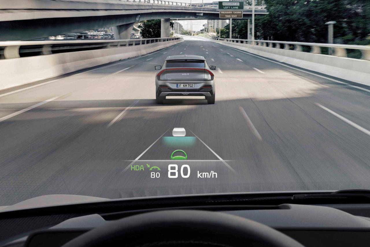 Der EV6 setzt sich mit teils wegweisenden Assistenzsystemen in Szene. Zum reichhaltigen Sicherheitsangebot zählt unter anderem auch ein besonderer Toter-Winkel-Warner: Setzt der Fahrer zum Spurwechsel den Blinker, übertragen Kameras in den Außenspiegeln das Bild auf das digitale Kombiinstrument. So lässt es sich wesentlich einfacher erkennen, ob sich gerade fremde Fahrzeuge im toten Winkel befinden. Enge Parklücken sind für den Koreaner ebenfalls kein Problem, denn der Kia rollt mittels Fernbedienung ganz galant in sie hinein und natürlich auch wieder hinaus – ohne dass der Fahrer hinterm Lenkrad sitzen muss.