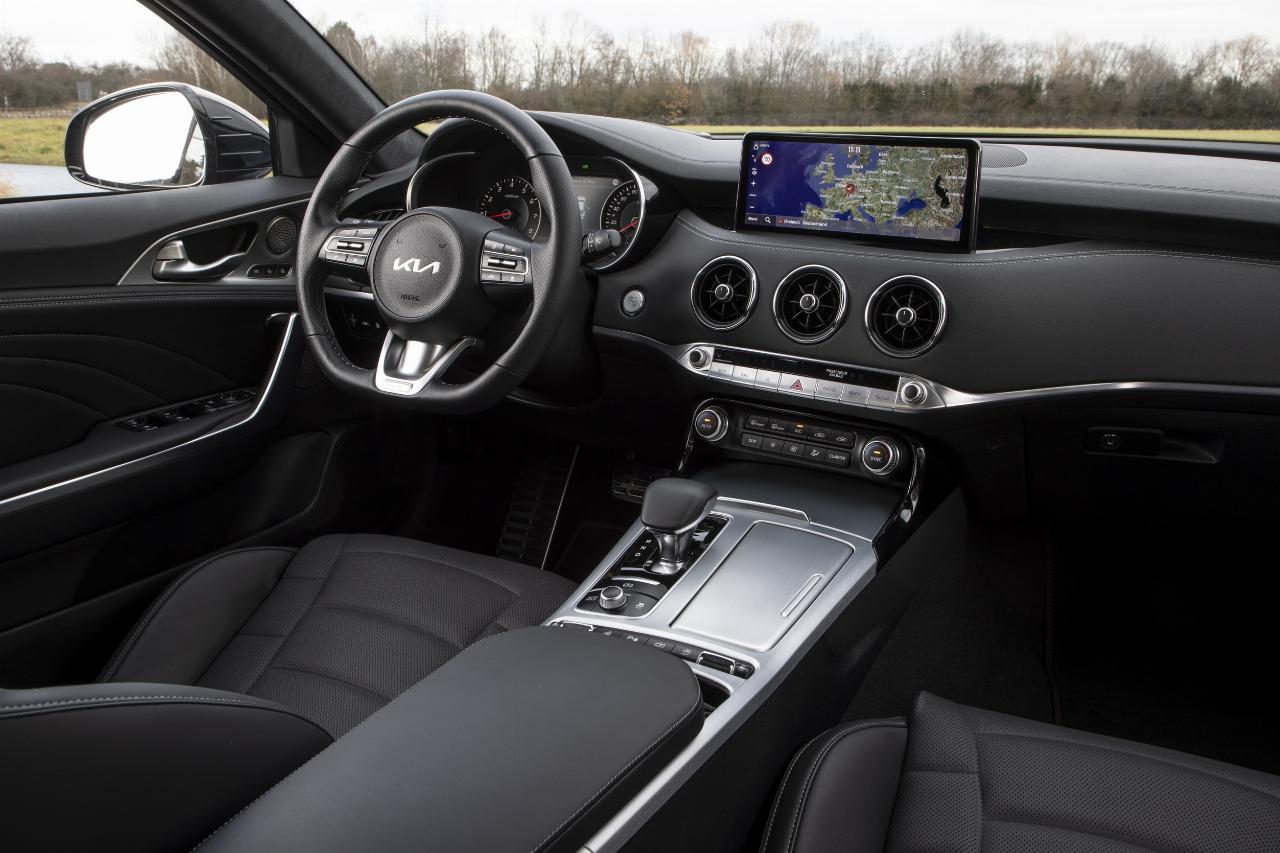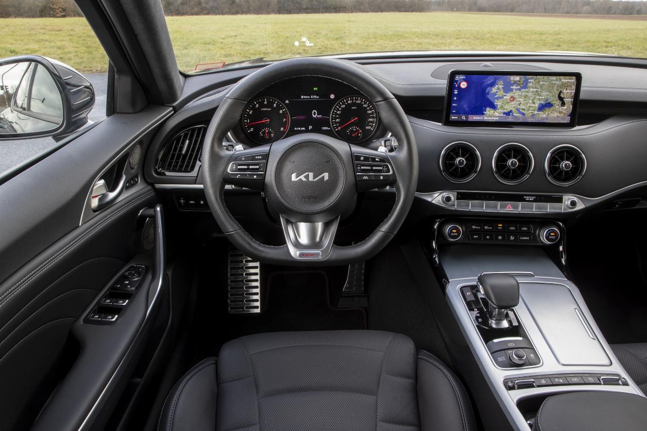 Das war es aber auch schon in Sachen Kritik. Der 10,25 Zoll große Touchscreen erweist sich als intuitiv bedienbar und das Multimediasystem gefällt mit einer schnellen Routenberechnung. Darüber hinaus fällt das Angebot an Fahrerassistenten umfangreich aus. Angefangen beim Totwinkelwarner, der beim Blinkersetzen die Kamerabilder des rückwärtigen Verkehrs in das Instrumentendisplay einblendet, über den adaptiven Tempomaten bis hin zum Kollisionswarner ist alles serienmäßig an Bord. Da außerdem die Verarbeitungsqualität mit ansprechenden Materialien im Innern hochwertig ausfällt, kann der kostengünstige Stinger durchaus mit seiner Premium-Konkurrenz locker mithalten und gilt als ein ebenbürtiger Geheimtipp. (Guido Bock, cen)