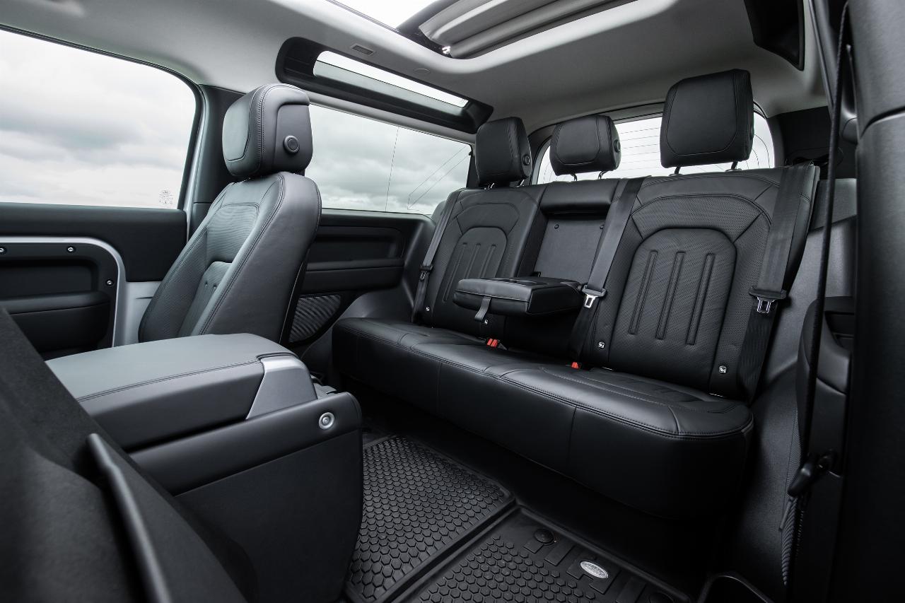 In seinem Innenraum bietet der nur knapp 4,60 Meter kurze Defender 90 seinen Gästen ordentlich Platz. Einzig der schmale Zugang in die zweite Reihe setzt ein gewisses Maß an Beweglichkeit voraus und das dahinterliegende Gepäckabteil fällt beim Dreitürer mit 297 bis maximal 1263 Litern recht übersichtlich aus. Wer mehr Stauraum benötigt, sollte daher gleich zum Defender 110 greifen. Der bietet auf einer Fahrzeuglänge von gut fünf Metern nicht nur zwei weitere Pforten einen bequemeren Einstieg, sondern wartet mit einem Volumen von 786 bis maximal 1875 Litern auf. Das reicht auch locker für sperriges Gepäck, allerdings ist es mit den cityfreundlicheren Abmessungen des Defender 90 dann vorbei.