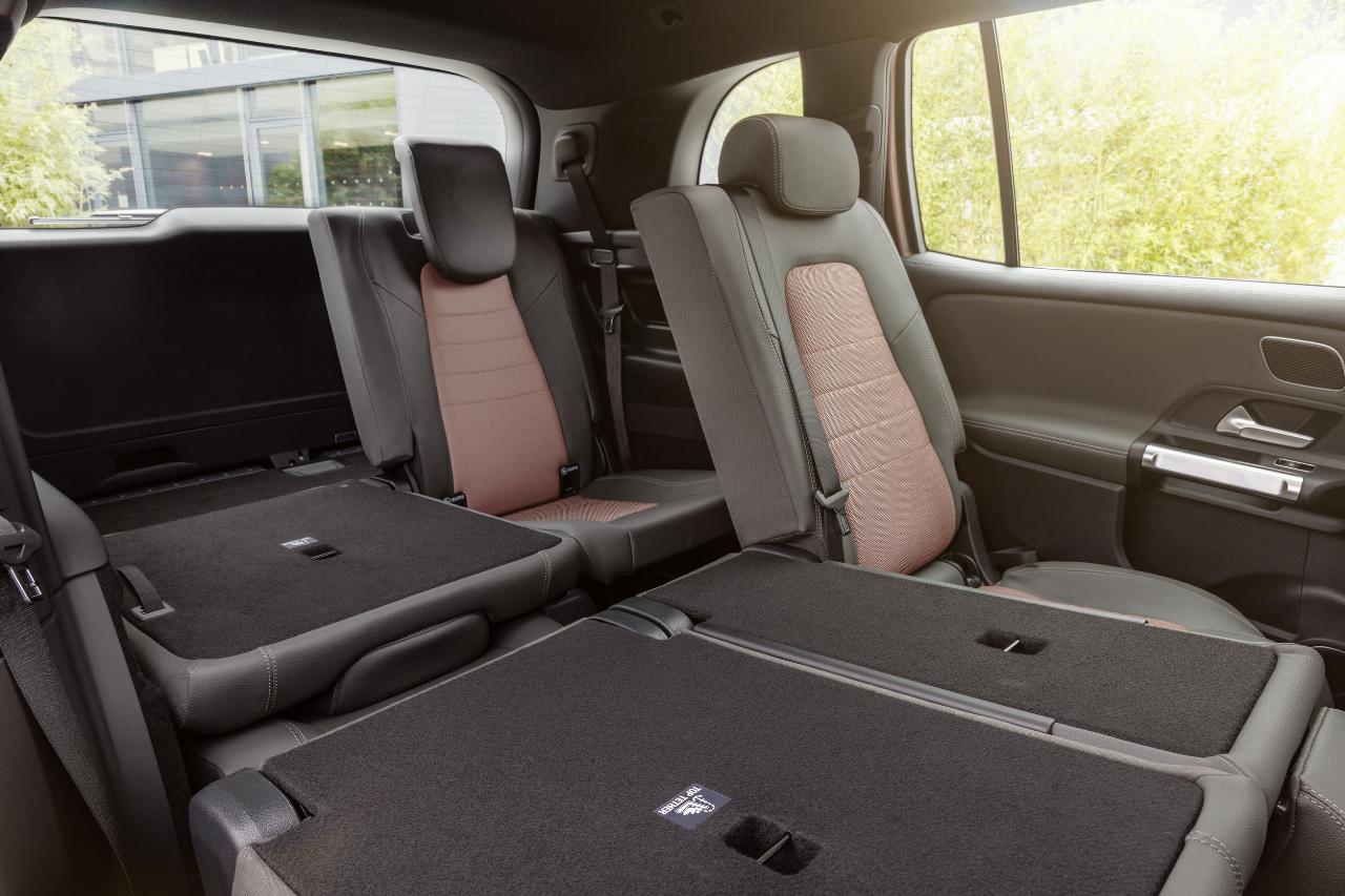 Unterschiede auch bei der Raumausnutzung. Hinter der serienmäßig elektrisch öffnenden und schließenden Heckklappe finden im fünfsitzigen EQB 350 bis 1710 Liter Gepäck Platz, im GLB sind es 570 bis 1805 Liter. Wie gehabt lässt sich die komplette Rückbank (gegen 428 Euro Aufpreis) mit einem einfachen Handgriff um neun Zentimeter nach vorn für einen größeren Kofferraum oder für mehr Beinfreiheit fünf Zentimeter nach hinten verschieben. Das hilft, wenn der Weihnachtsbaum oder die Kommode doch mal größer ausfallen oder die langen Kerle auf den Vordersitzen Platz genommen haben. Doch auch schon in der Normalposition können hinten bequem vier, mit etwas Zusammenrücken kurzzeitig auch mal fünf Personen sitzen. Allzu schwer sollten diese dann allerdings nicht sein und auch nicht viel Gepäck mitbringen, weil im mehr als 2,1 Tonnen schweren SUV nur noch 405 Kilogramm maximale Zuladung gestattet sind. Doch für die (gut situierte) 2+2-Durchschnittsfamilie reicht es allemal.