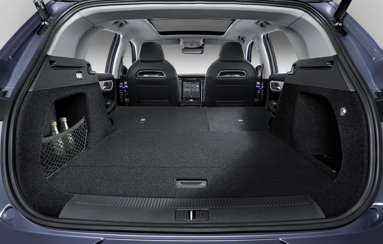 Der Marvel erweist sich als geräumig. Bereits in der ersten Reihe fällt die Bewegungsfreiheit enorm aus und für die mitreisenden Gäste im Fond können sich zusätzlich noch über allerlei Knieraum freuen. Nicht ganz so opulent sieht es hingegen beim Gepäckraumvolumen mit 357 bis 1396 Litern aus. Doch dürfte es in den meisten Transportfällen reichen. Die Heckklappe öffnet und schließt ganz galant und natürlich elektrisch. Auch die restliche Ausstattung unseres Testwagens fällt mit unter anderen Ledersitzen, Sitzheizung und -kühlung sowie einem Panorama-Glasschiebedach überaus reichhaltig aus.
