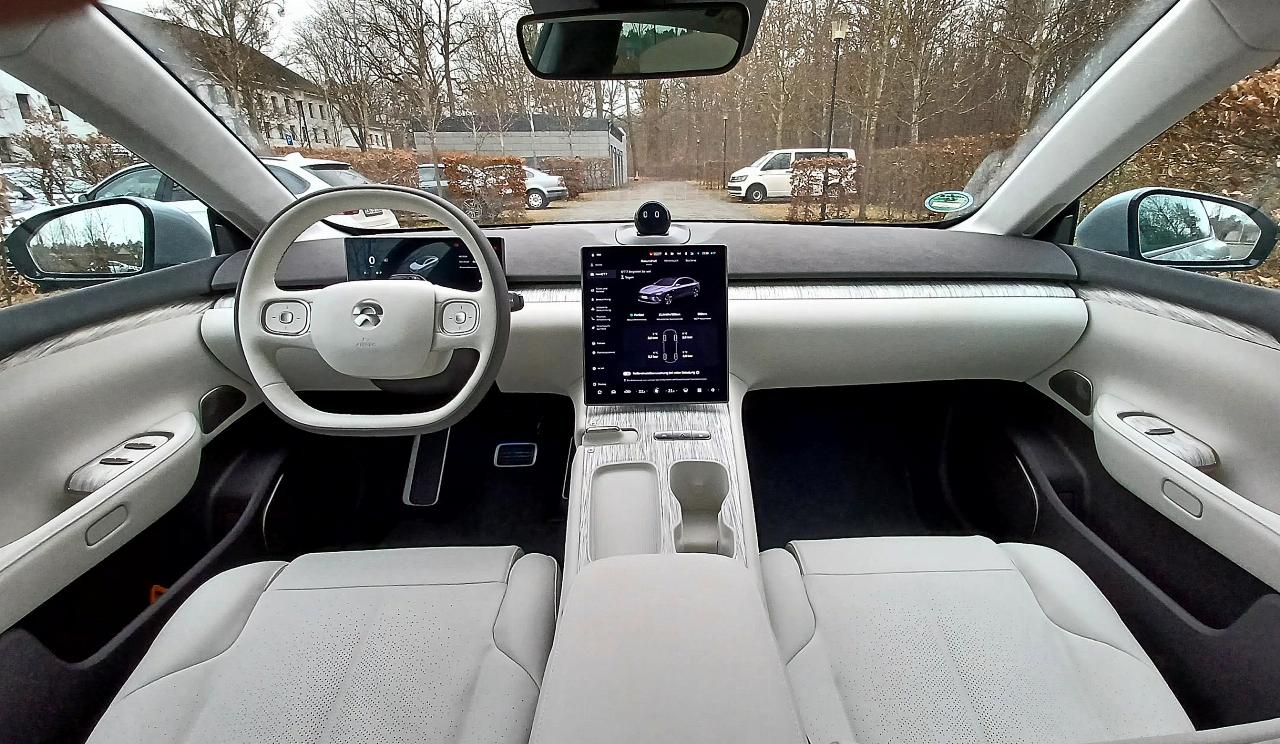 Teure Entwicklungsarbeit hat sich das Start-up erspart, indem es bewährte Komponenten bei etablierten Herstellern einkauft. Die Palette reicht von Sony (zum Beispiel für Kameras) über BASF (Haptex-Sitzbezüge) bis ZF Friedrichhafen (Luftfahrwerk). Eine bibelschwere Optionsliste, wie bei deutschen Herstellern üblich, gibt es für den ET7 nicht. Head-up-Display, Massagesitze, das ganze Arsenal an Assistenzsystemen – alles inklusive. Lediglich die 21-Zoll-Karbonfaserfelgen werden mit 2100 Euro extra berechnet. Die Anhängelast wird bei E-Fahrzeugen oft als Reizthema empfunden – Nio verspricht 2000 Kilogramm und auch die elektrisch ausfahrende Kupplung zum Ziehen ist inklusive.