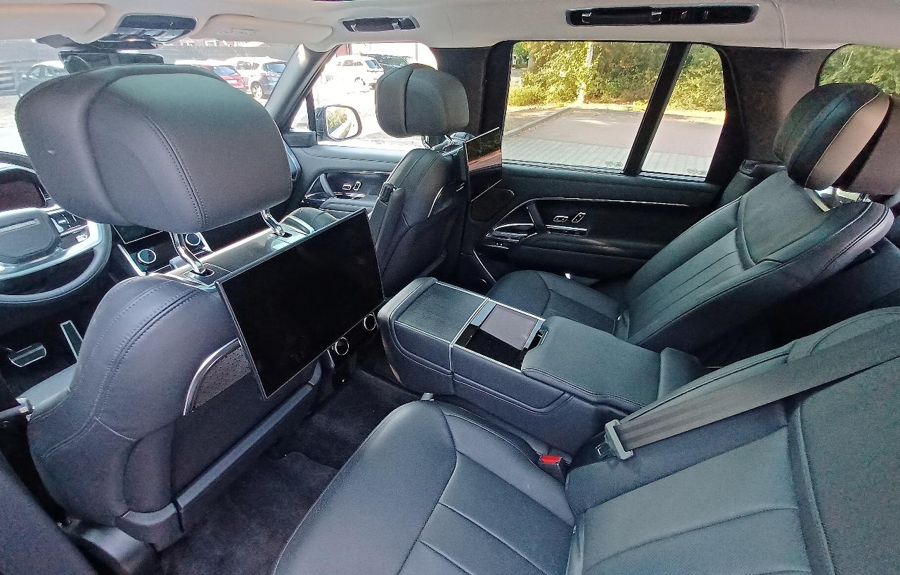 Das reicht für zwei Kompakt-Pkw. Aber Range Rover meint es eben auch gut mit seinen Kunden und hat die First Edition bis unters Panorama-Glasdach mit edlen (und in der Summe leider gewichtigen) Sonderausstattungen vollgepackt. Dazu gehören 23-Zoll-Alufelgen, Wärmeschutz- bzw. Akustik-Verglasung rundum, beleuchtete Einstiegsleisten aus Metall, das Kühlfach in der Mittelkonsole und ein Soundsystem mit 35 Lautsprechern. An Bord gibt es nur wenig, was manuell bewegt werden kann. Dass die zweiteilige Heckklappe elektrisch öffnet und schließt, darf in dieser Preisklasse vorausgesetzt werden, aber braucht auch die Laderaumabdeckung eine Automatik? Die Masse der Stellmotoren dürfte einen Gutteil des Übergewichts ausmachen, allein in einem Sitz sollen es gut 60 davon sein.