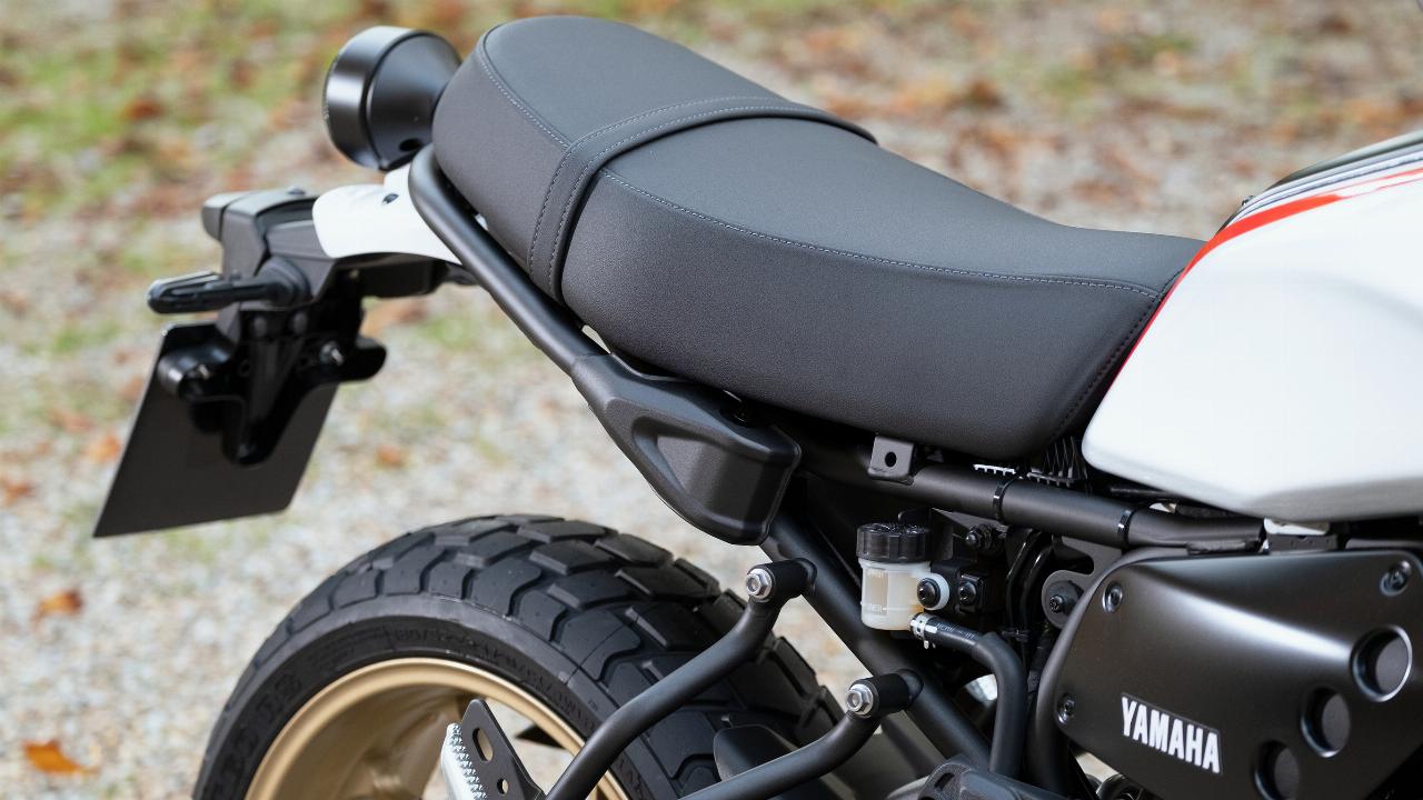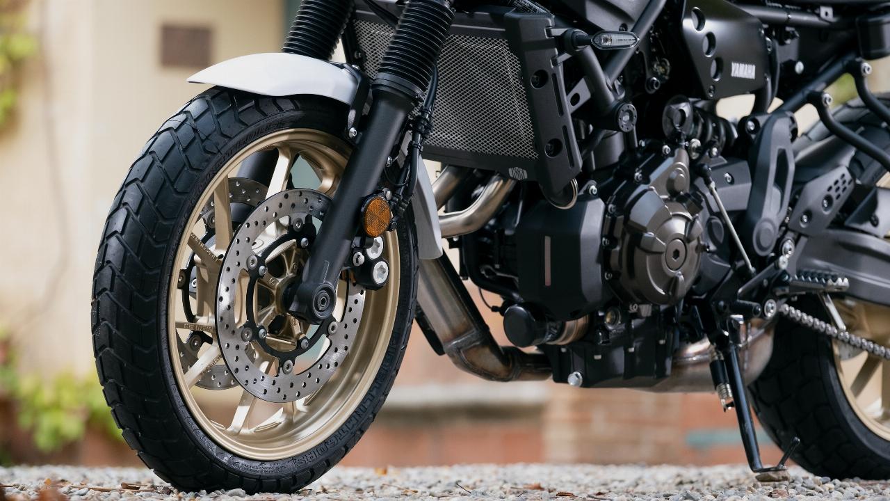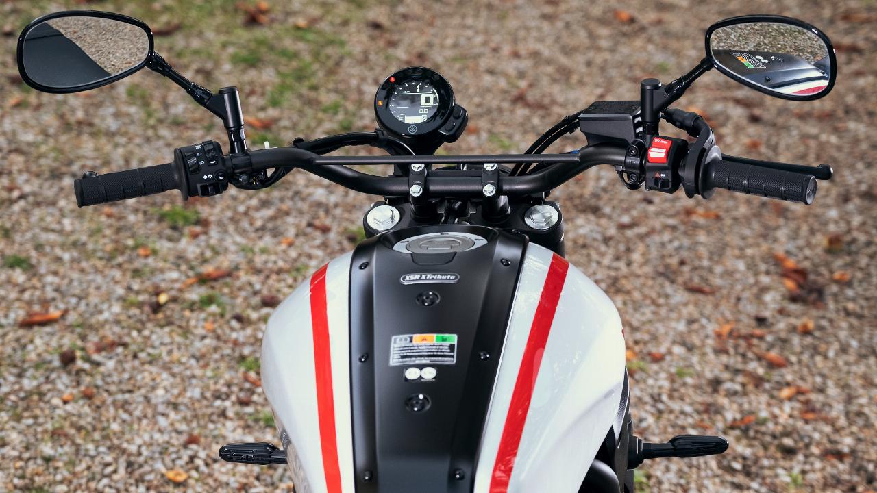Fahrwerksseitig stellen hohe Geschwindigkeiten eh keine Hürde für die 700er dar. Telegabel und Federbein sorgen für ausreichend Komfort und Stabilität. Der breite Lenker – bei der XTribute mit einer Querstrebe im XT-Enduro-Stil – sorgt für ein sicheres Gefühl. Die flache Sitzbank fällt eher hart aus. Bei der XTribute misst die Sitzhöhe 855 Millimeter. Das sind zwei Zentimeter mehr als bei der Serienversion, die eine tailliertere Doppelbank hat. Auch das Gewicht des Hommage-Bikes ist minimal höher: Die XTribute wiegt vollgetankt 190 Kilogramm, die Standardvariante bringt zwei Kilo weniger auf die Waage, was unter anderem an der unterschiedlichen Bereifung liegt. Die werksseitig aufgezogenen Pirelli MT 60 RS der XTribute fallen in die Kategorie stark profilierte Straßenreifen.