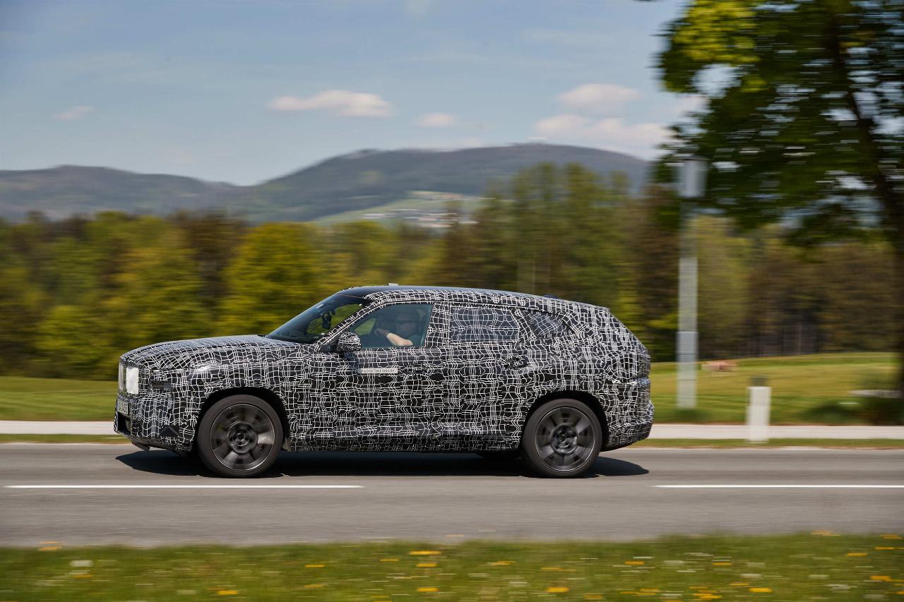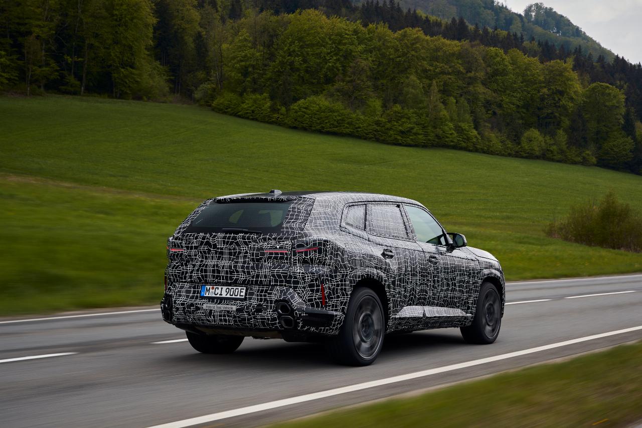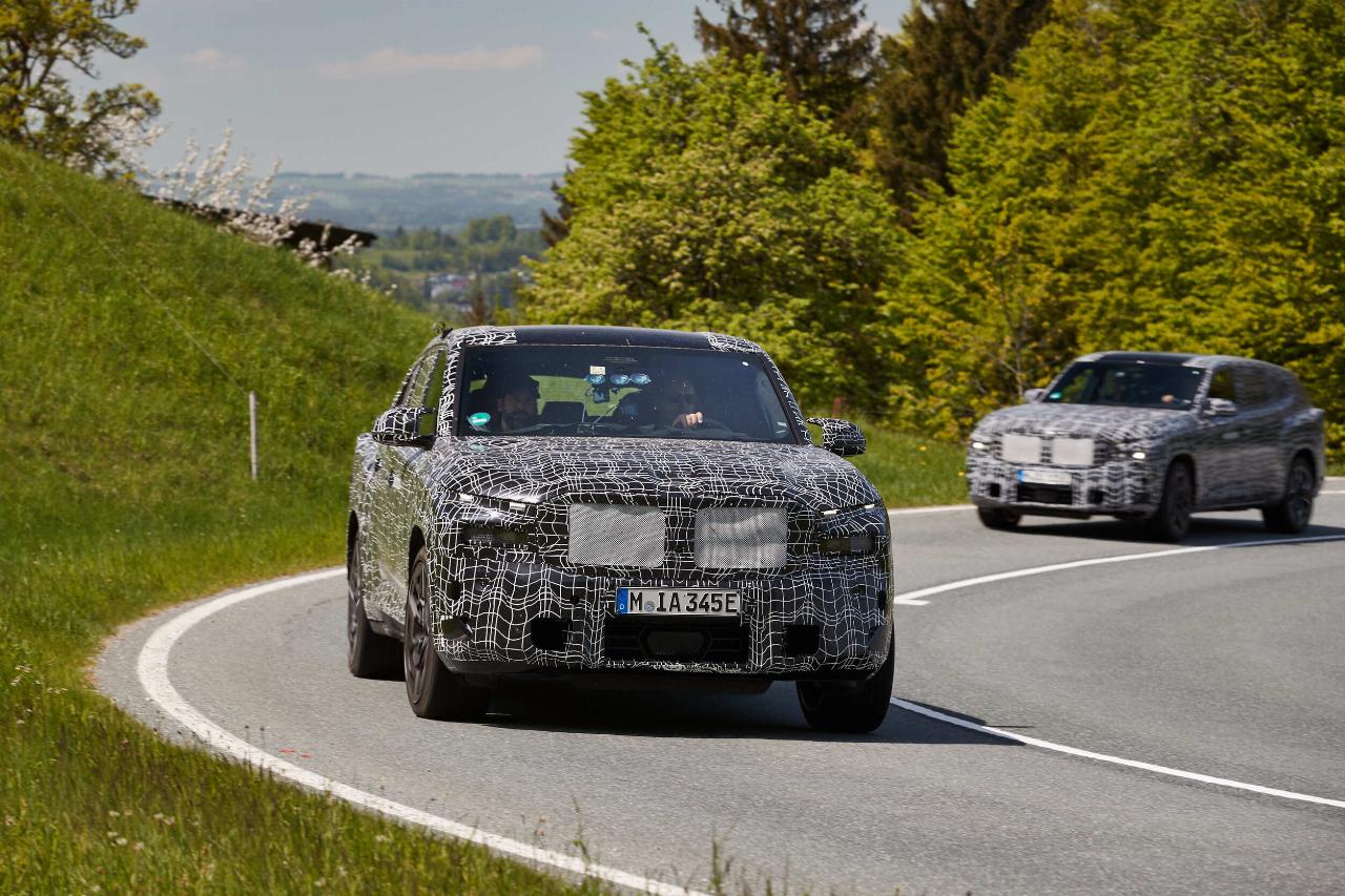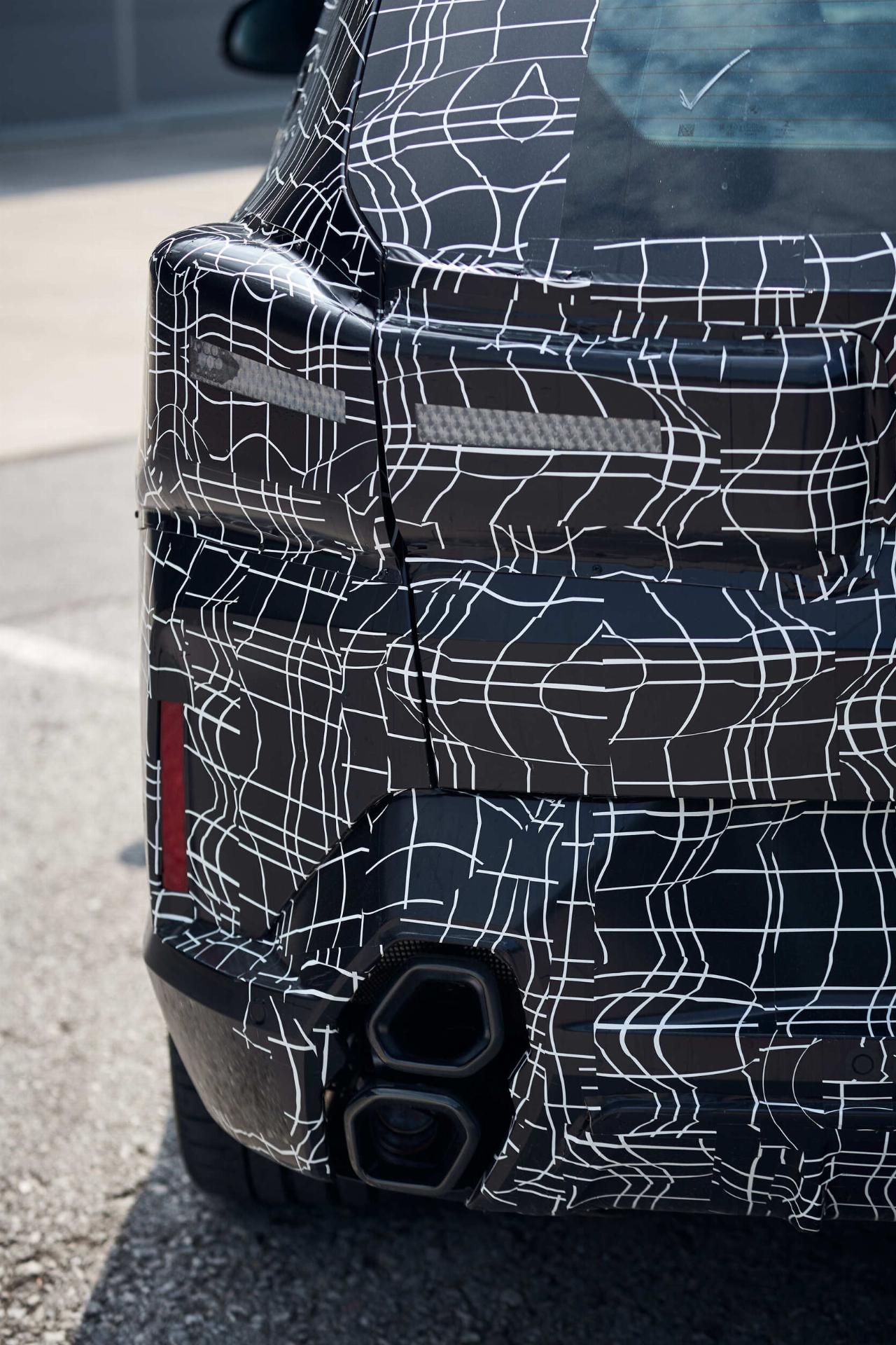 Noch sind von außen wenige Details des BMW XM zu erkennen, Abmessungen und Proportionen sind allerdings genauso eindrucksvoll, wie es die Ende 2021 vorgestellte Studie erahnen ließ. Eine höchst prominente Doppelniere und voluminöse Lufteinlässe künden im Zusammenspiel mit der vierflutigen Auspuffanlage vom gewaltigen Luftdurchsatz dieses Oberklasse-SUV, das ab Dezember im US-Werk Spartanburg gebaut wird und im März 2023 auf den Markt kommen soll.