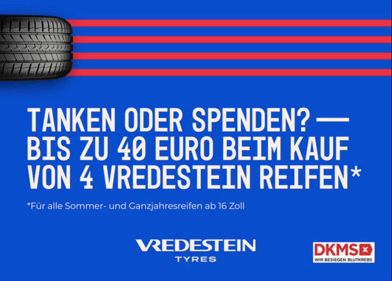 Wer bei teilnehmenden Händlern vier Sommer- oder Ganzjahresreifen von Vredestein in Größen von 16 bis 17 Zoll erwirbt, erhält einen Tankgutschein über 20 Euro, ab 18 Zoll sind es 40 Euro. Entscheidet sich der Kunde dafür, den Betrag an die DKMS zu spenden, gibt Apollo Vredestein noch einmal die gleiche Summe für den Kampf gegen Blutkrebs hinzu. Die Aktion läuft bis Mitte Mai lang.