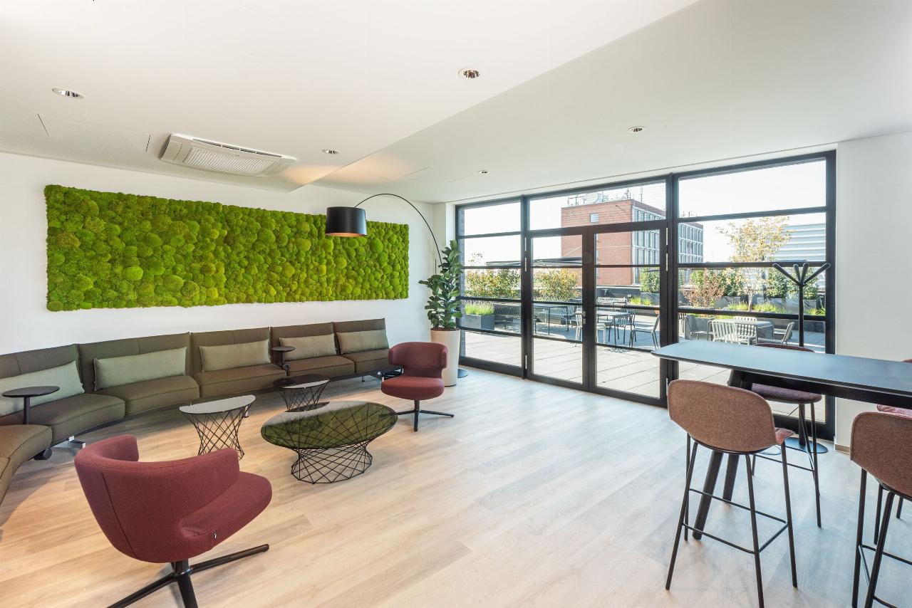 Die Deutschlandzentrale verteilt sich auf vier Stockwerke sowie das Erdgeschoss. Renault verfolgt dort unter anderem das Shared-Desk-Prinzip ohne fest zugeordnete Arbeitsplätze. Zum Nachhaltigkeitskonzept des Gebäudes zählt neben einer effizienten Isolierung die energiesparende Kühlung oder Heizung über Deckensegel mit integriertem Wasserkreislauf anstelle einer konventionellen Klimaanlage. Eine Ausnahme bilden lediglich die Serverräume. Für Mitarbeiterinnen und Mitarbeiter, die mit dem Fahrrad zur Arbeit kommen, finden sich im Untergeschoss zwei Duschen. Die neue Zentrale der Renault Deutschland AG bietet darüber hinaus eine direkte Anbindung an eine Bahn-Haltestelle Kölner Verkehrsbetriebe.