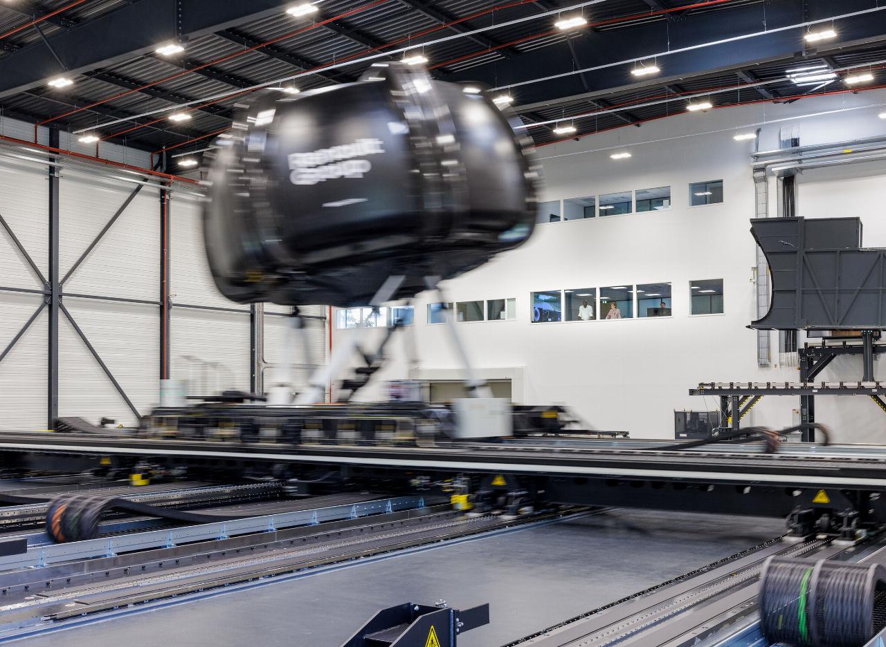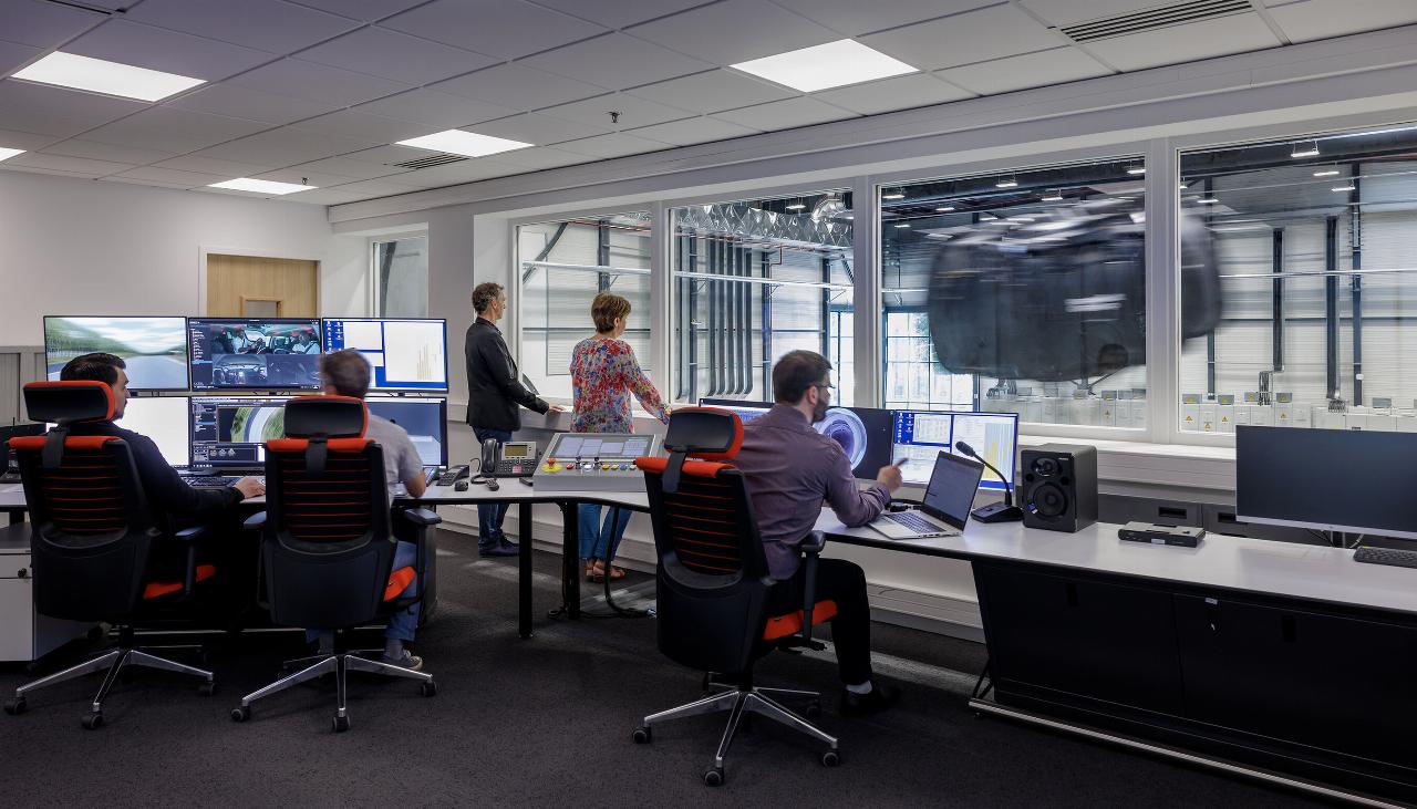 Der Simualtor befindet sich in einer eigens dafür eingerichteten Halle mit einer Fläche von fast 1400 Quadratmetern und in einer Höhe von zwölf Metern. In der Kabine, die physische und digitale Elemente kombiniert, findet ein komplettes Fahrzeug Platz. Auf leistungsstarken Stempeln montiert und auf zwei 25 Meter langen Schienen für Quer- und Längsbewegung gleitet sie auf 625 Quadratmetern Bewegungsfläche mit 90 Tonnen bewegter Masse und Beschleunigungen von bis zu einem G in Quer- und Längsrichtung.