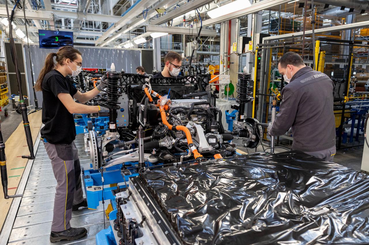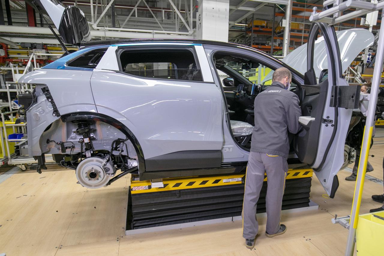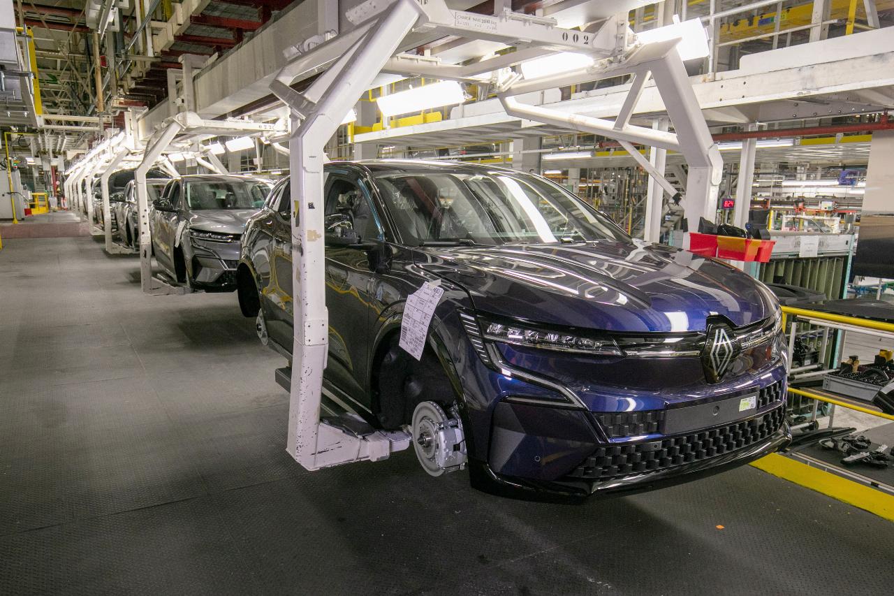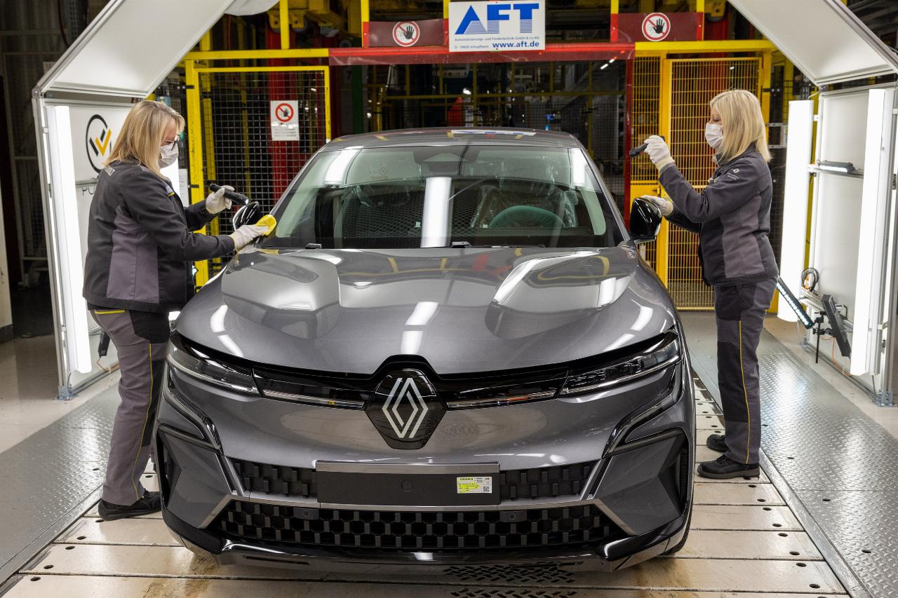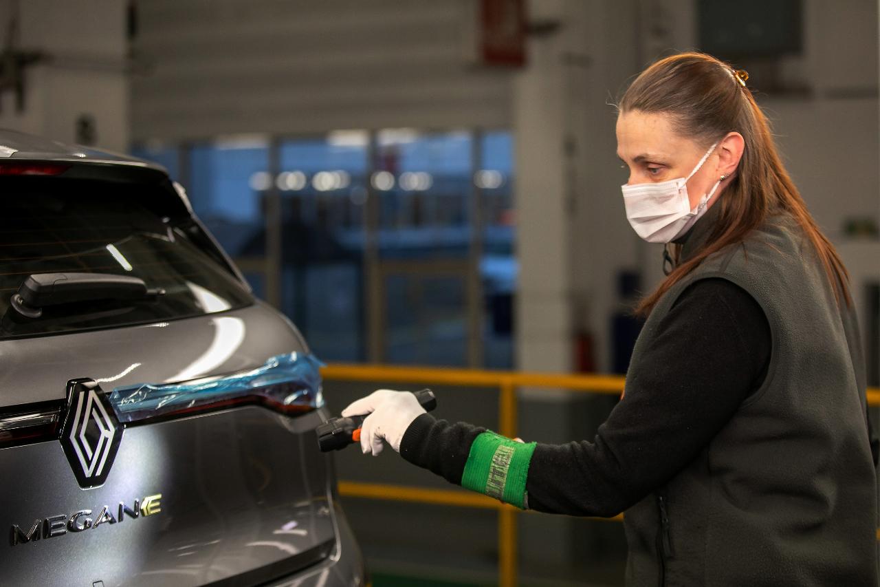 Der Stromer steht auf der modularen CMF-EV-Plattform. Damit er reibungslos in den Produktionsprozess integriert werden konnte, investierte Renault mehr als 550 Millionen Euro in die Umgestaltung und Modernisierung der Fabrik. „Außerdem haben wir die Ergonomie der Arbeitsplätze verbessert“, fügt Luciano Biondo, der Direktor der Renault-Gruppe Electricity hinzu. Mit der Gründung der Tochtergesellschaft soll die Fabrik nicht nur zum Maßstab für die Qualitätsfertigung werden, sondern Renault einen Wettbewerbsvorteil verschaffen. Daher wurde für den Mégane E-Tech Electric eigens eine neue Montagelinie errichtet, die jedoch anschließend nahtlos in die Gesamtfertigung übergeht. Danach läuft der elektrische Mégane gemeinsam mit den anderen Modellen mit Verbrennungsmotor in einer Produktionsline durch die Hallen.