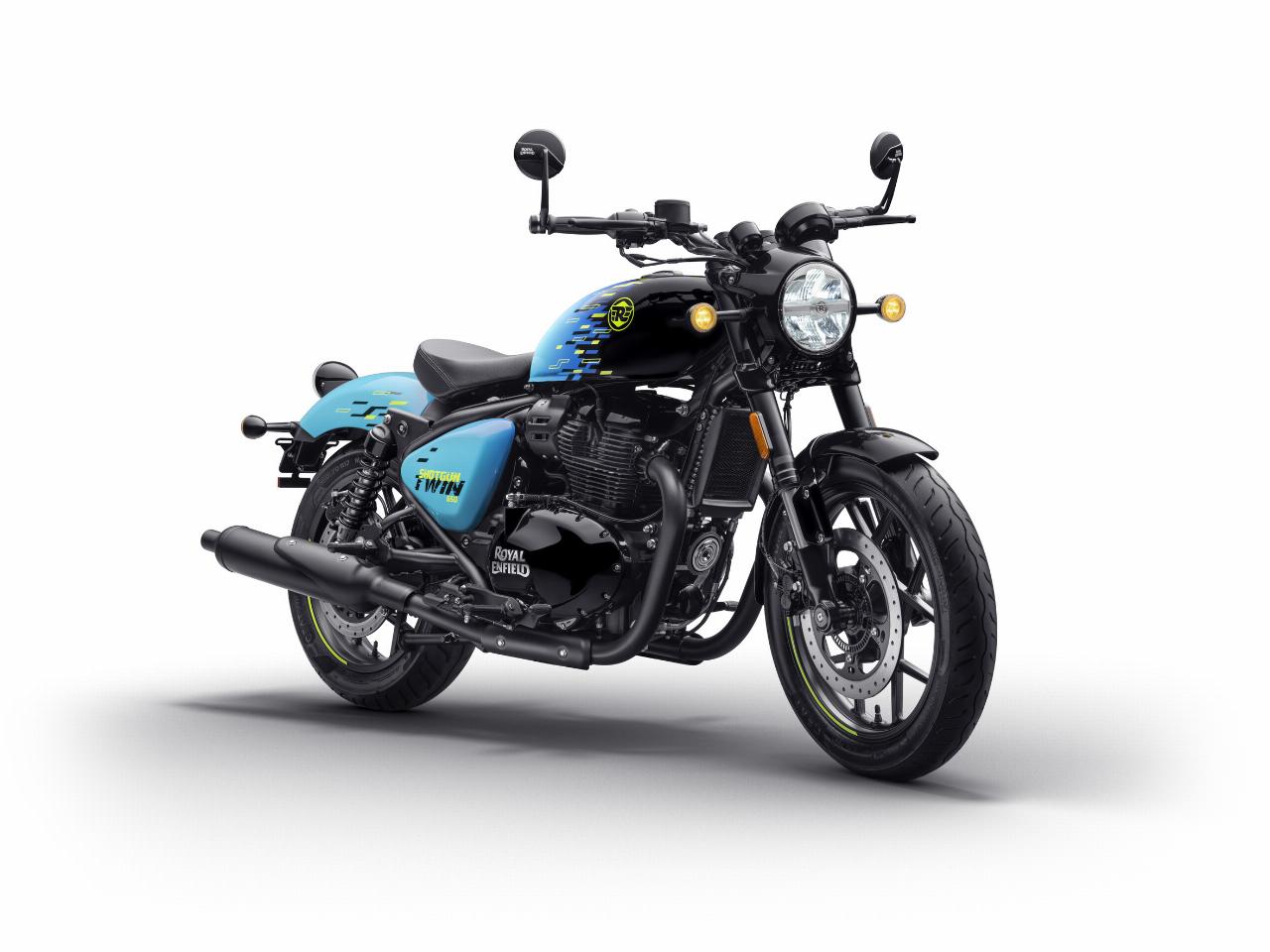 Royal Enfield, im vergangenen Jahr immerhin die Nummer elf auf dem deutschen Markt, erweitert seine Twin-Baureihe um die Shotgun 650. Das Derivat im Custom-Style fällt unter anderem durch seine besonderen Lackierungen und den als Schwingsattel dargestellten Einzelsitz auf. Das Soziuskissen ist abnehmbar. Die Shotgun erhält eine spezifische Fahrwerksabstimmung und hinten eine 17-Zoll-Bereifung. Wie Interceptor, Continental GT und Super Meteor sorgt auch hier der 648-Kubik-Zweizylinder mit knapp 48 PS (34,6 kW) für Vortrieb. Das Cockpit umfasst, wie bei allen Modellen, auch eine Turn-by-turn-Navigation. Fahrfertig wiegt die Shotgun 240 Kilogramm, die Sitzhöhe beträgt 79,5 Zentimeter, der Tank fast 14 Liter.