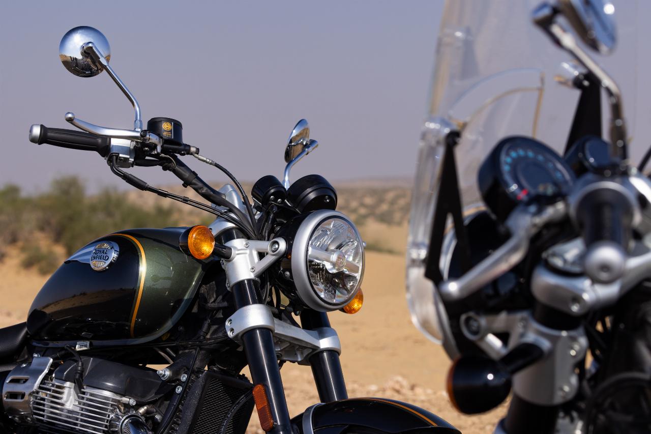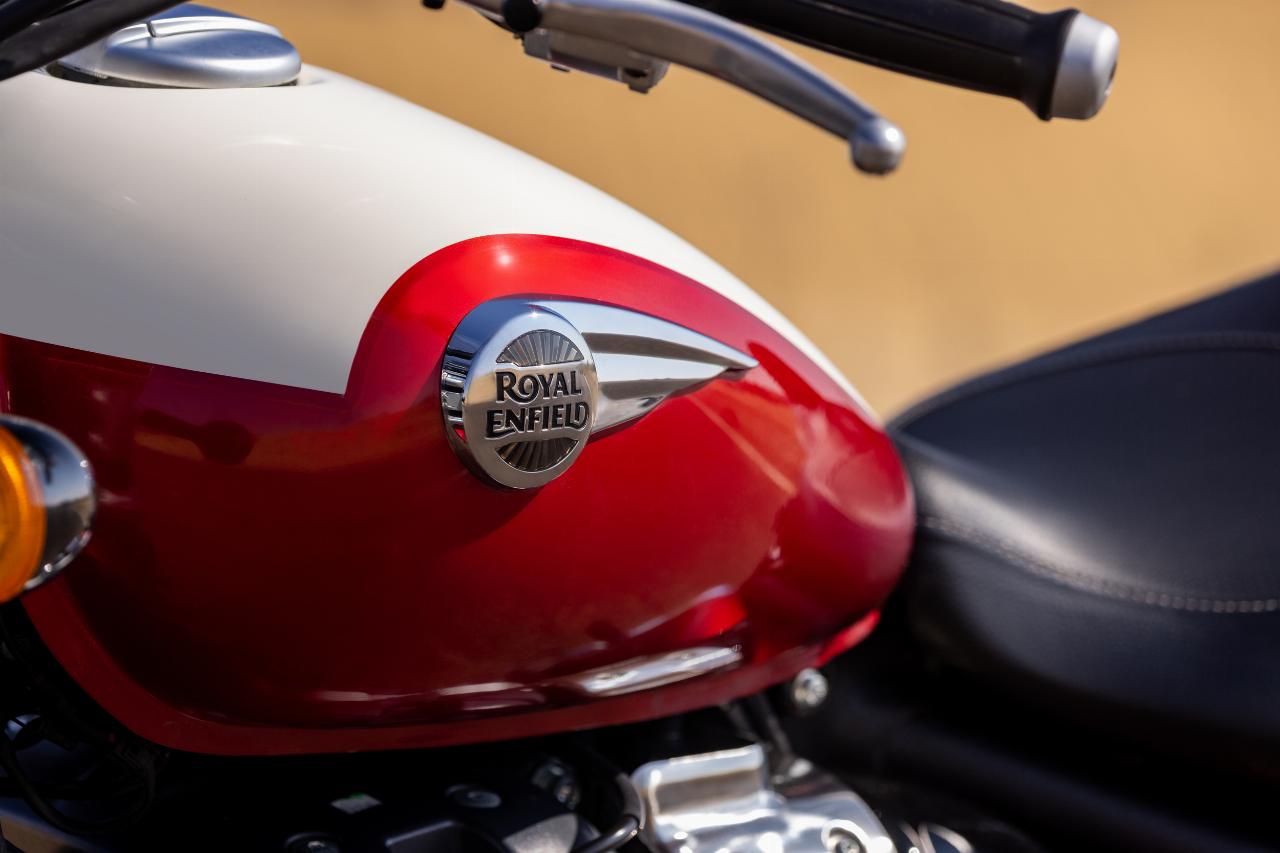 Die Super Meteor 650 kommt in Basis- und 500 Euro teurerer Solo-Tourer-Ausführung. Sie verfügt als erste Royal Enfield über eine Upside-down-Gabel. Vorne ist ein 19-Zoll-Rad montiert, hinten sind es 16 Zoll. Zur Ausstattung gehören ein analoger Tacho und ein LCD-Display, verstellbare Kupplungs- und Bremshebel, LED-Scheinwerfer sowie neue Drehschalter aus beschichtetem Aluminium, eine USB-Buchse und das von der Metor 350 bekannte Turn-by-Turn-Navigationsmodul. Dazu gibt es ein klassisches Markenemblem aus Chrom am Tank. (aum)