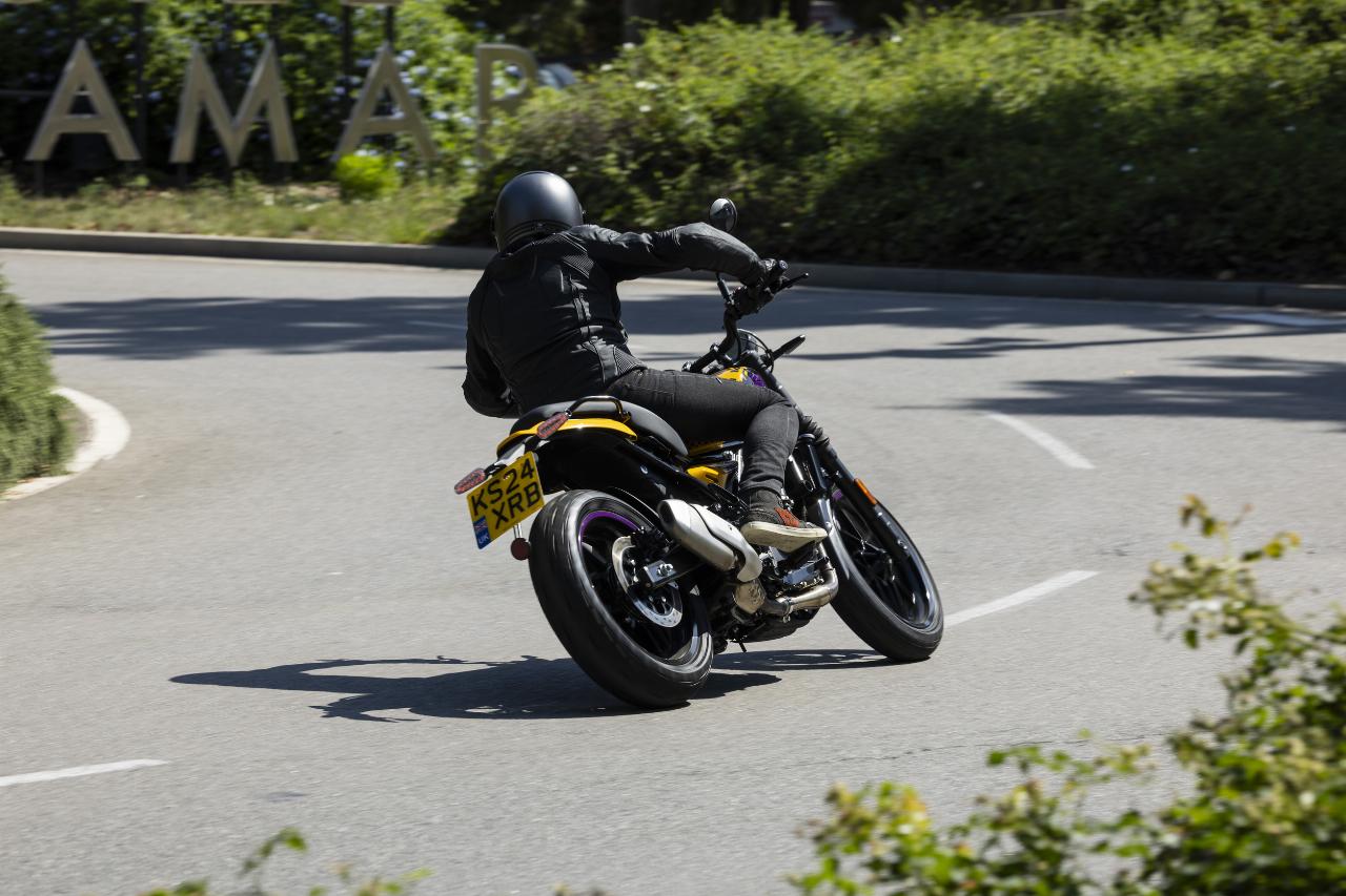 Der Tank der Royal Enfield Guerilla 450 fasst elf Liter, die Sitzbank ist leicht abgestuft. Die GRR rollt auf 17-Zoll-Rädern, hat LED-Scheinwerfer und in die Blinker integrierte Rückleuchten. Sie verfügt über einen Eco- und einen Performance-Fahrmodus sowie einen USB-Anschluss. Das Gewicht beträgt fahrfertig 184 Kilogramm. Es wird drei Varianten geben. Der Basis Analogue kommt ohne TFT-Kombiinstrument und kostet 5290 Euro, die Topversion Flash ist lediglich 250 Euro teurer. Die Auslieferungen beginnen im August. (aum)