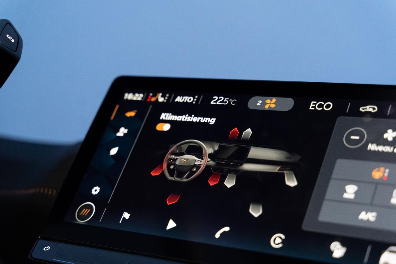 Wer eine Wallbox zur Verfügung hat oder an einer Ladesäule steht, bei dem kann eine praktische Funktion Hilfe leisten, die er schon bei Reiseantritt nutzen konnte. Beim Cupra Born etwa lässt auch bei Fahrtunterbrechungen die gewünschte Temperatur einstellen, oft schon per Handy-App vom Frühstücksbuffet des Hotels aus. Wieder bedient sich das Auto dabei des Stroms aus der Steckdose.