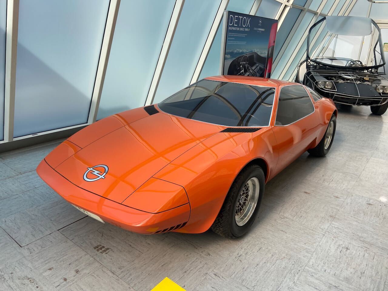 Doch nicht jede Studie wurde auch umgesetzt. Beispiel für eine verpasste Chance ist das „CD Concept“ von 1969. „Dieses Auto verkörpert schon ideal unsere heutige Designphilosophie ,Bold & Pure’“, sagt Chefdesigner Mark Adams. Mutig und rein soll das Design von Opel sein, ohne Dekoration, Chrom oder Zierrat. „Detox“, nennt Adams diese Abkehr von überflüssigen Details. Neben der atemberaubenden, flachen Form des „CD Concept“, die auch einem Maserati gut gestanden hätte, zeigt das Modell auch ein paar technische Highlights: Die Sitze sind fest mit dem Chassis verschraubt, Lenkrad mit Armaturenbrett – das bereits einem Tablet ähnelt – und die Pedale sind stattdessen verstellbar. Unter der Fiberglas-Karosserie steckt der V8-Motor des Opel Diplomat.
