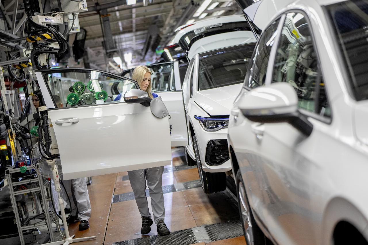 Mitarbeiter stellten zum Jubiläum außerdem einen ganz besonderen Golf vor. Im Vorfeld hatten Beschäftigte, darunter viele Auszubildende, einen neuen Golf 8 mit einer Collage von Mitarbeiter-Bildern gestaltet. Das Unikat wird in Zukunft als Teil der internen Fahrzeugflotte im Werk unterwegs sein. (aum)