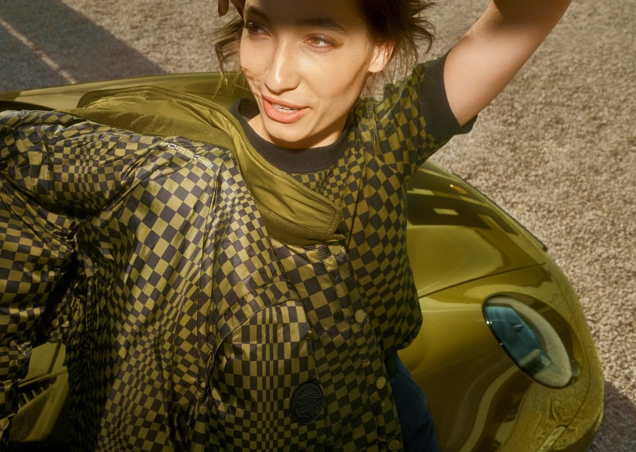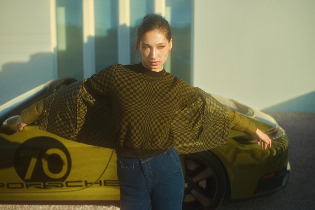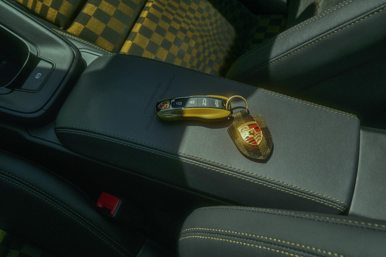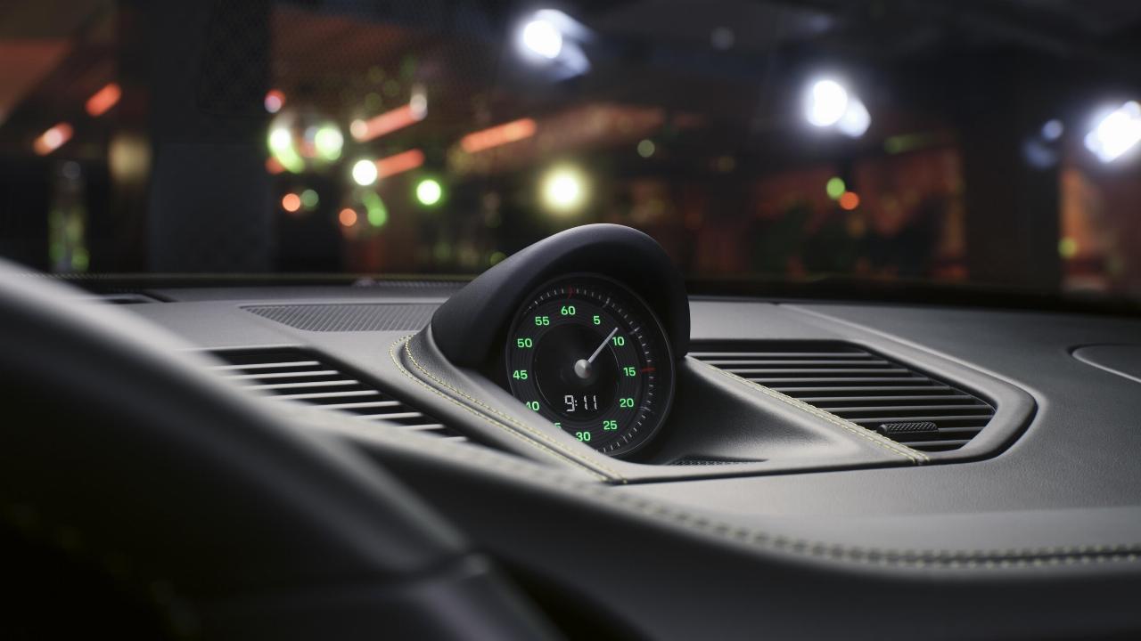 Weitere Details sind das Markenwappen auf der Fronthaube, das nahezu identisch mit dem historischen Emblem von 1963 ist, und die Heritage-Plakette auf dem Gitter des Heckdeckels, deren Design an die Plakette des Porsche 356 erinnert, die in den 1950er-Jahren nach Erreichen der 100.000-Kilometer-Marke vergeben wurde. Das karierte Stoffmuster im Interieur erinnert an eine Zielflagge. Das Kombiinstrument greift ebenfalls historische Elemente auf. Das hochauflösende Display im Format 12,65 Zoll besitzt weiße Zeiger und Skalenstriche in analoger Darstellung. Grüne Ziffern erinnern an den legendären Porsche 356.