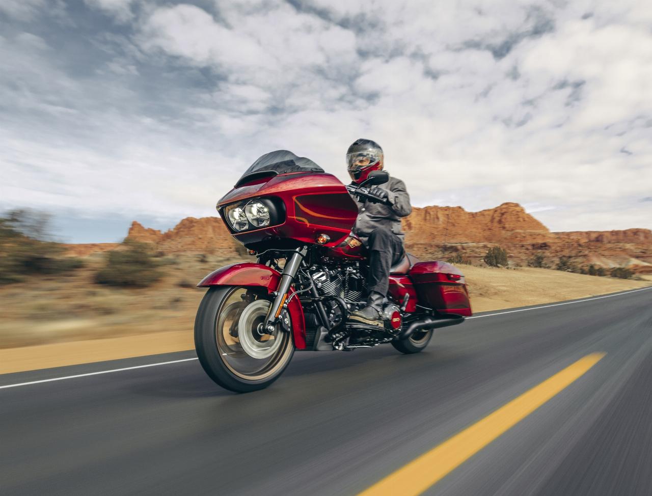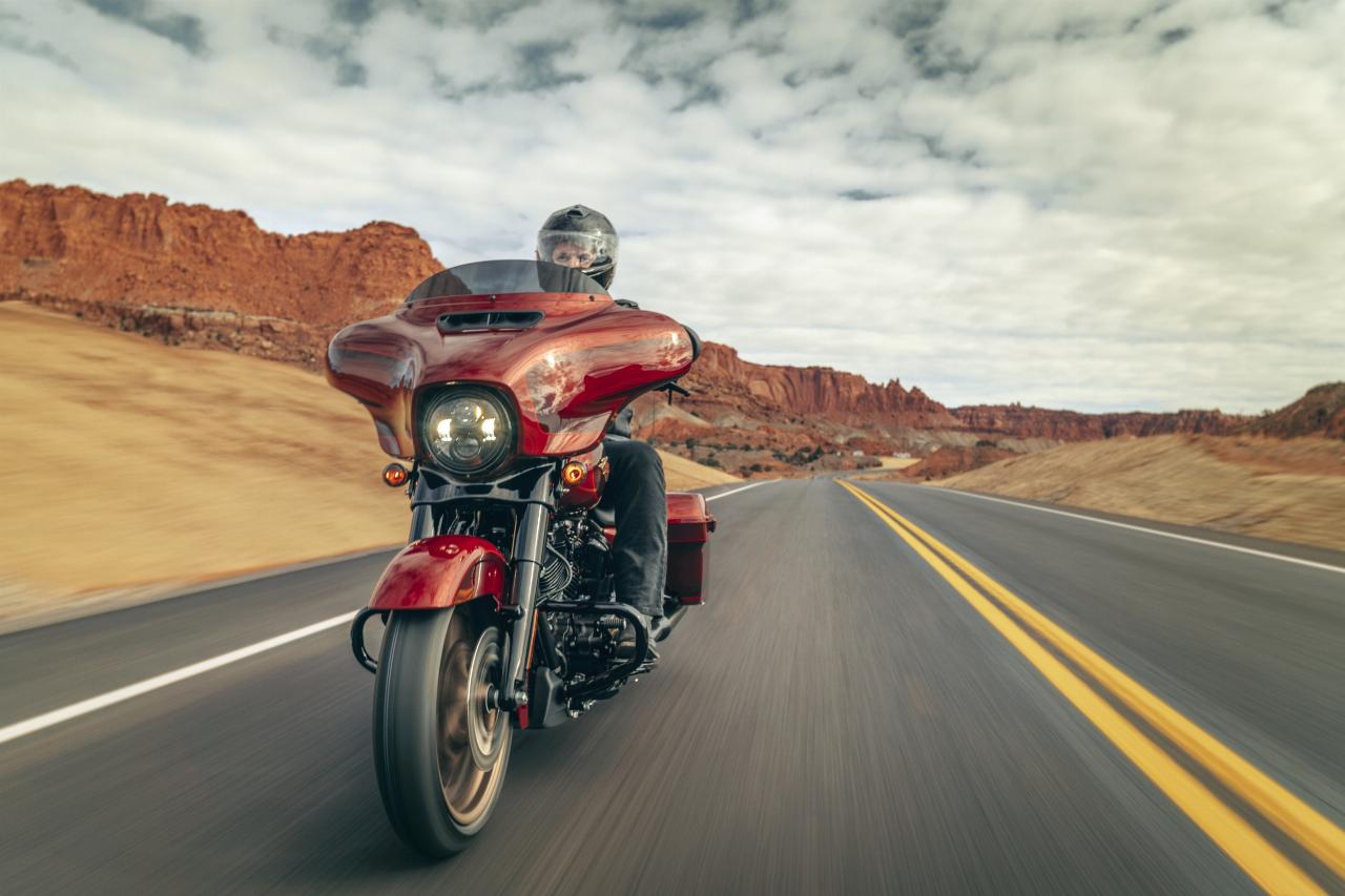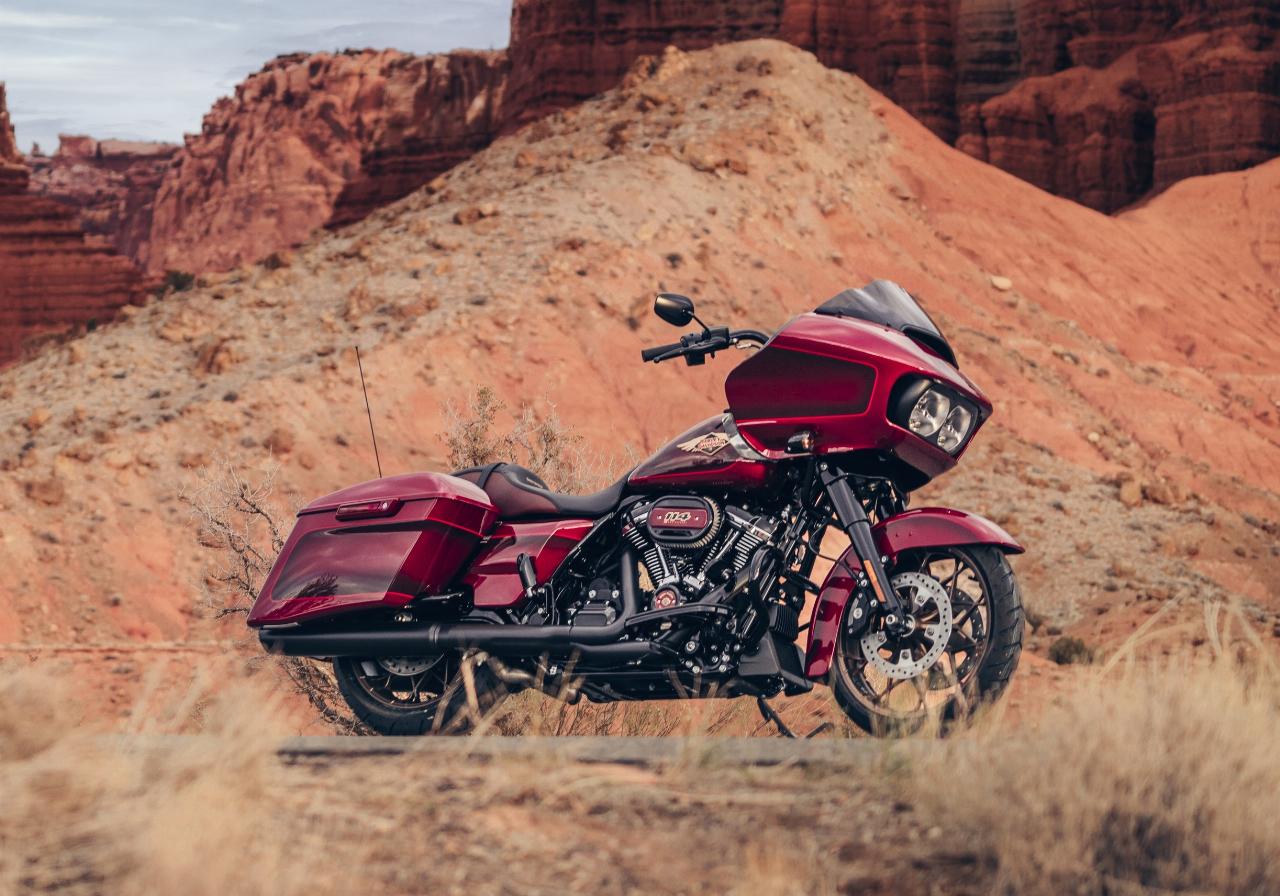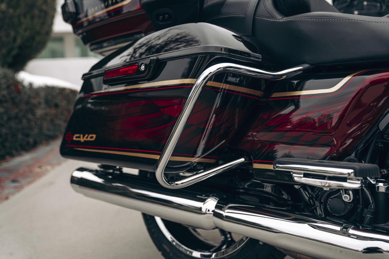 In ähnlichem Geburtstagsdress präsentieren sich die Anniversary-Ausgaben von Ultra Limited, Tri Glide Ultra, Street Glide, Road Glide, Fat Boy und Heritage Classic. Je nach Modell handelt es sich um Auflagen von 1100 bis 3000 Einheiten. Bei allen ist die Sonderlackierung von frühen Harley-Davidson-Motorrädern inspiriert. Hier bildet klassisches, glänzendes Heirloom Red bildet Basislack, der durch einen in Midnight Crimson gehaltenen Schattierungseffekt ergänzt und mit hellroten Pinstripes verziert ist. Das Markenlogo am Tank präsentiert ebenfalls einen Adler im Art-déco-Stil, die Sitze sind an den Flanken rot gefärbt und mit einem gestickten goldfarbenen Harley-Logo versehen, während der Antriebsstrang Inserts in Red Fade trägt. (aum)