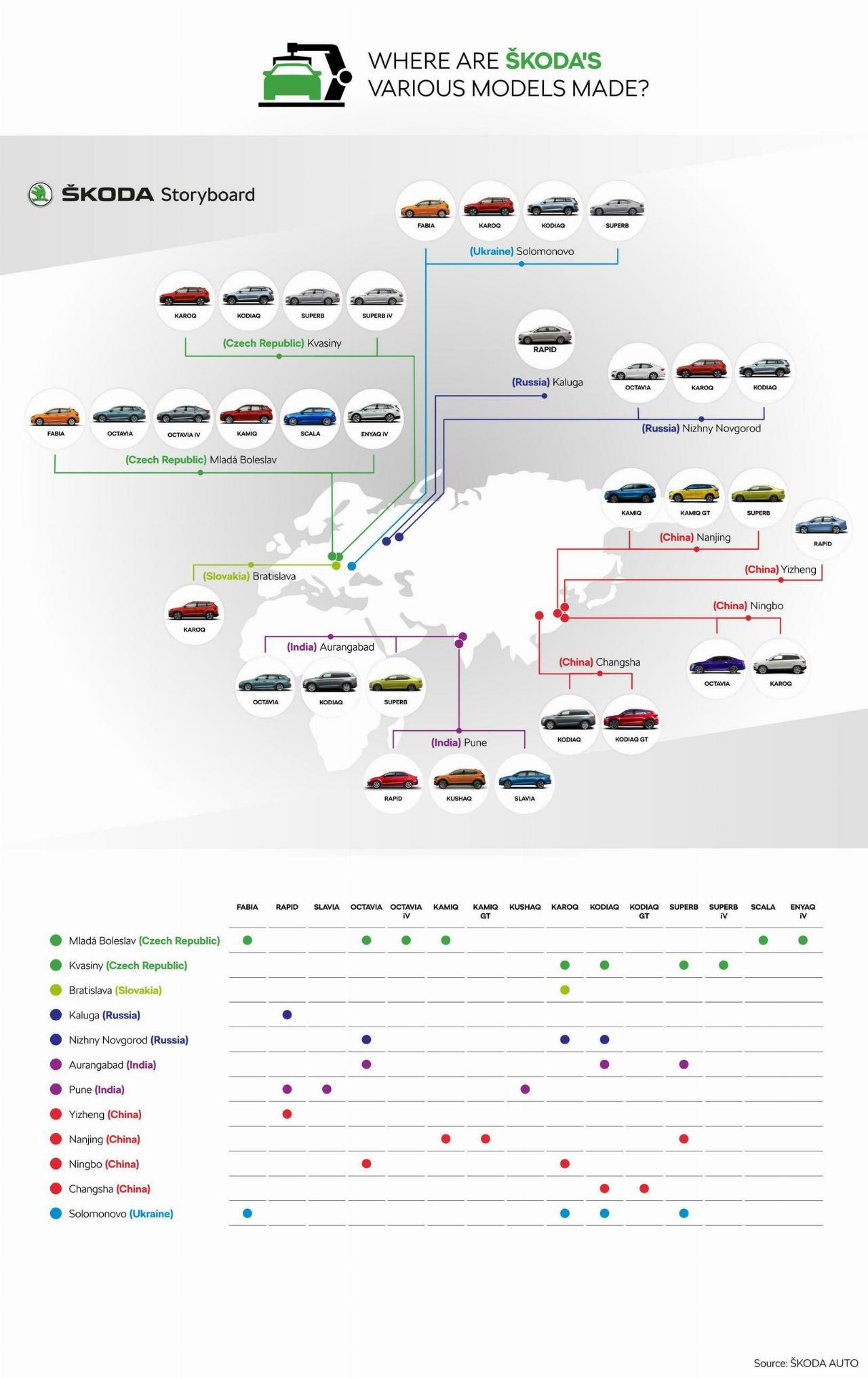 Außerdem fertigte Skoda am Unternehmensstammsitz 128.000 Hochvolt-Traktionsbatterien, 419.000 Schaltgetriebe und 1,4 Millionen Achsen auch für andere Modelle des Volkswagen-Konzerns. Dazu kommen 185.000 Superb aus dem Werk Kvasiny und 423.000 Direktschaltgetriebe aus Vrchlabí. An seinem Standort in der slowakischen Hauptstadt Bratislava produzierte die Marke rund 12.500 Einheiten des Karoq und des Citigo iV
