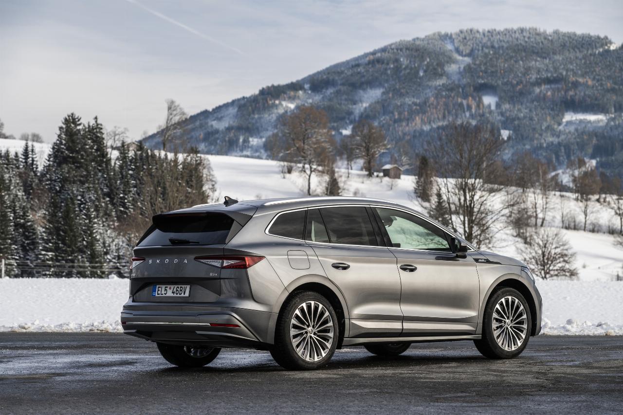 Dank weiter entwickeltem Thermomanagement sollen die Hochvoltbatterien außerdem fortan Reichweiten von mehr als 560 Kilometern für den Enyaq 85 und mehr als 570 Kilometern für das Enyaq Coupé 85 ermöglichen. Die Einstiegsversion Enyaq 60 bleibt technisch unverändert. Auch sollen sich die Akkus der allradgetriebenen und RS-Versionen an entsprechenden DC-Schnellladesäulen mit bis zu 175 kW aufladen lassen. Damit sei die 82 kWh-Batterie (77 kWh Nettokapazität) unter optimalen Bedingungen in 28 Minuten von 10 auf 80 Prozent gefüllt, verspricht Skoda, acht Minuten schneller als bisher. Die heckgetriebenen Enyaq 85-Varianten laden weiterhin mit maximal 135 kW. Darüber hinaus unterstützt eine neue Fahrzeug-Software nun auch das Vorkonditionieren der Batterie. (aum)