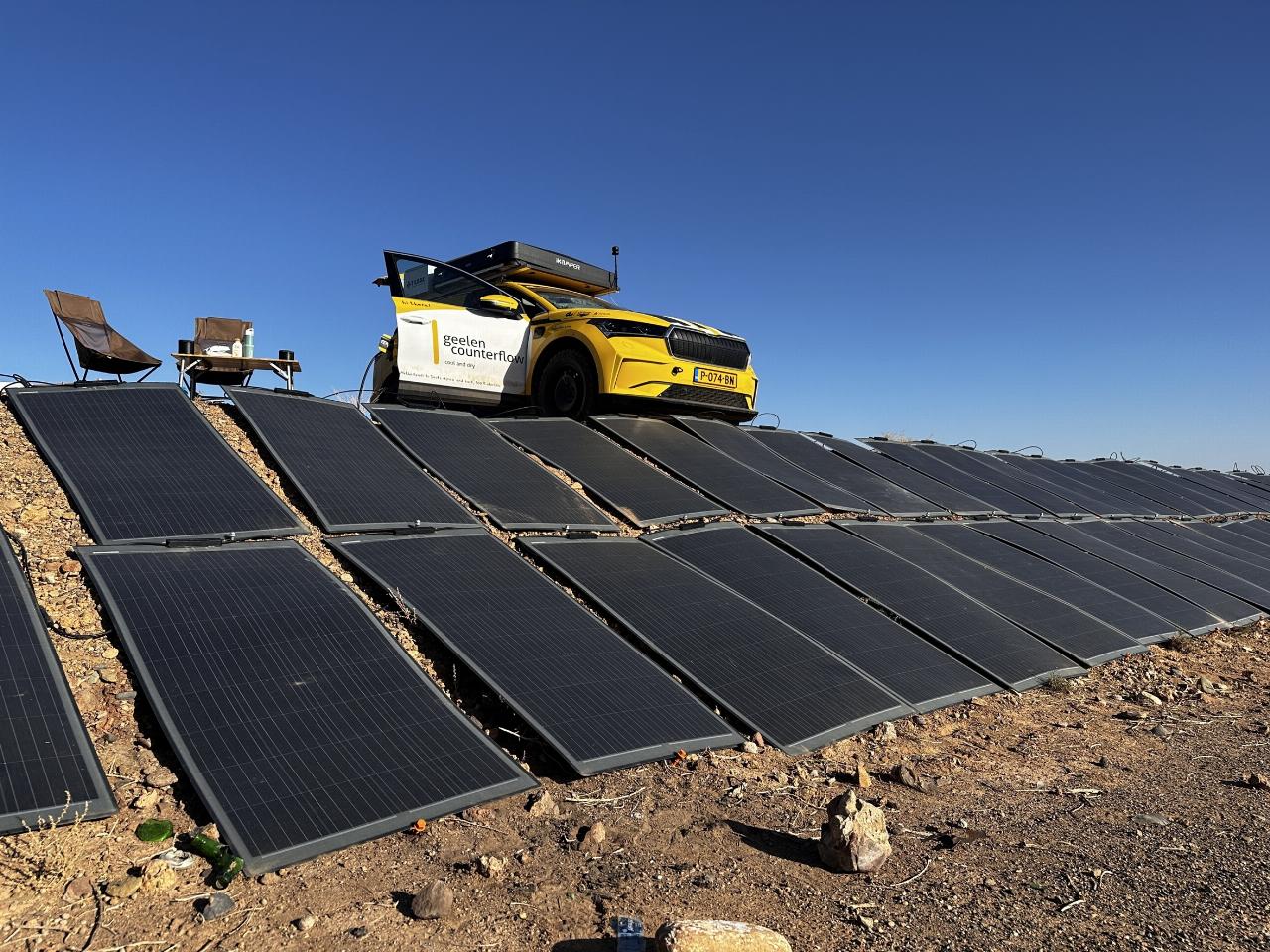 Für die Afrika-Tour baute das Duo den Heckbereich des Enyaq um, um noch mehr Gepäck mitnehmen zu können. Hinzu kamen ein Dachzelt und Offroad-Reifen für bessere Traktion im Gelände. Eine wichtige Rolle spielte das Photovoltaikset. Renske Cox und Maarten van Pel nahmen faltbare Solarpanele mit einer Gesamtfläche von 60 Quadratmetern mit – sie lieferten im Lauf der 33.360 Kilometer langen Tour quer durch Afrika 54 Prozent der benötigten Energie. Mehr zu der Reise findet sich auch auf der Internetseite www.skoda-storyboard.com. (aum)