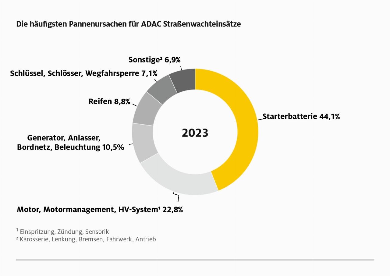 2023 wurde der ADAC im Schnitt alle neun Sekunden zu Hilfe gerufen. Insgesamt rückte die ADAC Pannenhilfe im vergangenen Jahr über 3,5 Millionen Mal aus - das sind 117.570 Pannen mehr als im Vorjahr. Das Durchschnittsalter der betroffenen Fahrzeuge stieg im vergangenen Jahr um 0,2 auf 12,9 Jahre. Die größte Pannenwahrscheinlichkeit haben laut der Statistik Fahrzeuge im Alter zwischen 18 und 23 Jahren. Als zuverlässig gilt eine Baureihe in der Pannenstatistik, wenn ihre Pannenkennziffer in allen Jahrgängen zwischen drei und zehn Jahren zu den besten 40 Prozent gehört. (aum)