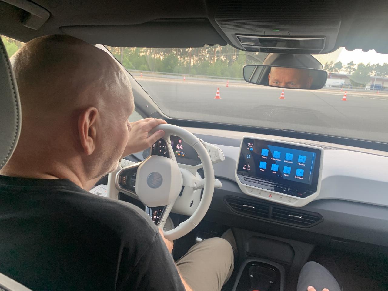 Dabei ist die neue Technologie, die ZF zur Demonstration in einen VW ID 3 eingebaut hat, so unspektakulär wie unscheinbar. Frei nach dem Motto: Wie Sie spüren, spüren Sie nichts, reagiert die by-Wire-Lenkung ebenso präzise und feinfühlig wie ein herkömmliches Lenksystem. Und genau darin besteht die Kunst. Egal, ob auf glattem oder riffeligem Belag, ob im scharf gefahrenen Kurvenslalom oder weit ausholenden Rundkurs mit konstantem Lenkradeinschlag. Das Feedback ist unmittelbar, direkt und natürlich.